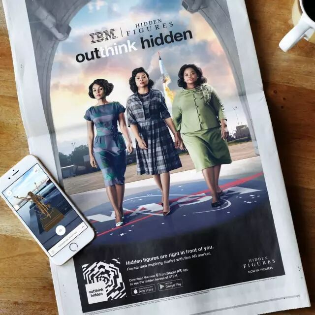 2017 年新年伊始,T Brand Studio 与 IBM 合作推出了一款全新的增强现实体验产品《Outthink Hidden》,灵感来自于二十世纪福克斯的电影《隐藏人物》。《隐藏人物》叙述了 20 世纪 60 年代太空竞赛期间三位非裔美国女性数学家的真实故事,其中一个故事包括 Dorothy Vaughan 如何自行学会并教导其他人为首台 IBM 大型机进行编程。
