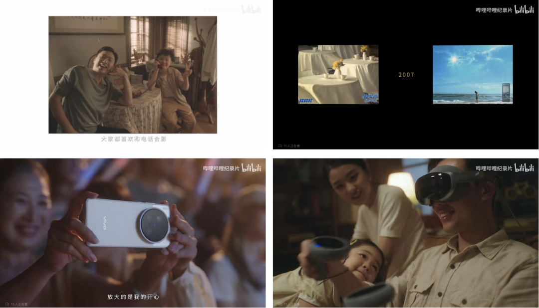 由此,vivo 还埋下了一明一暗两条叙事线索:明线上,呈现过去 30 年普通人的生活变迁,串联起家与国的时空回忆,与用户建立强有力的情感纽带;暗线上,展现过去 30 年中国移动通讯事业的发展,也融入了 vivo 的产品线升级,为用户埋下可感知的情感锚点。