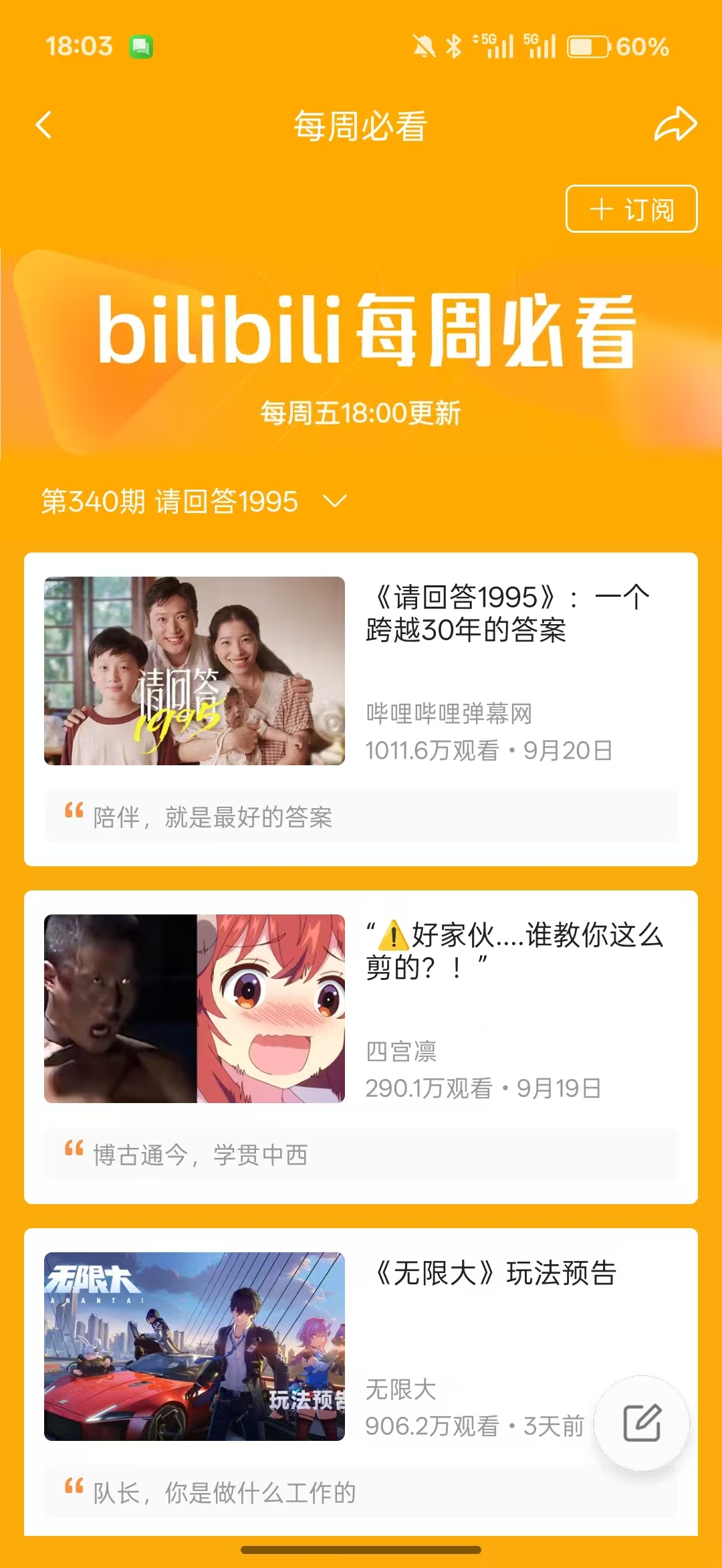 以品牌周年为契机,vivo 实现了一场高质量议题营销下的破圈级传播,主视频《请回答 1995》短片在 B 站发布后,迅速登上全站热门第一、当周必看榜单,截至目前,视频播放量已超千万,弹幕近 10 万条。在超 6000+ 评论下,我们看到了年轻一代的热切共鸣。