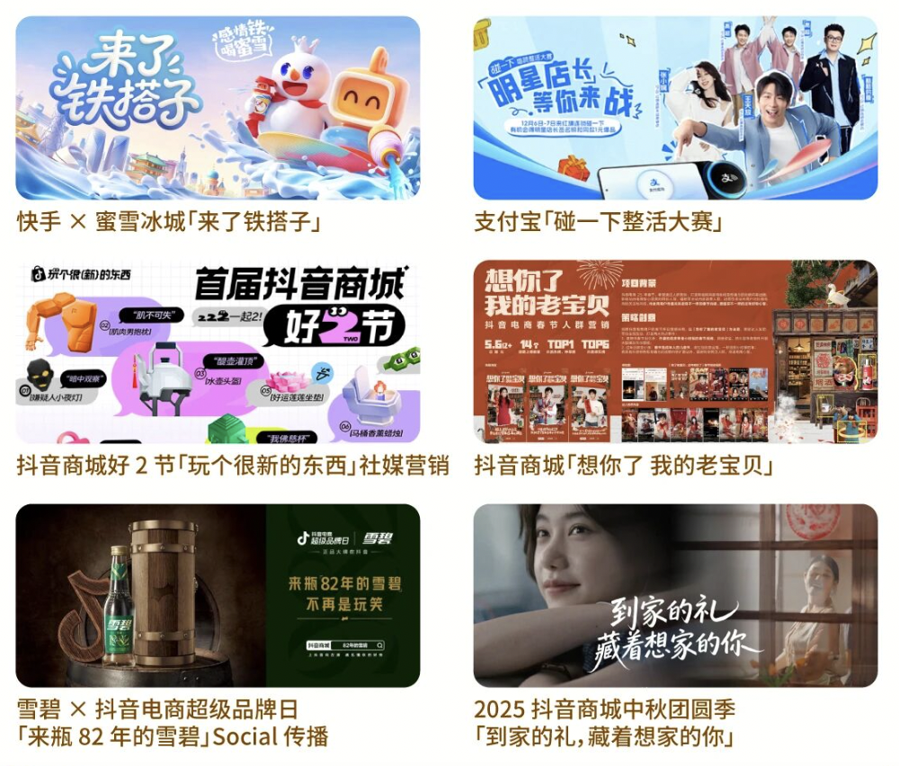多年来,无限猴子打造过不少颇具传播声量的行业案例,从曾经全网热议的雪碧 × 抖音电商超级品牌日「来瓶 82 年的雪碧」Social 传播、抖音电商开新日 × 坊风筝节「放飞自我」;到近年抖音电商春节人群营销「想你了 我的老宝贝」、支付宝「碰一下整活大赛」、抖音商城好 2 节「玩个很新的东西」、快手 × 蜜雪冰城「来了铁搭子」等等。他们不断探索社会化营销的新场景与新玩法,助力品牌打透年轻圈层,屡次登上热搜榜单的同时,斩获不少行业知名奖项。