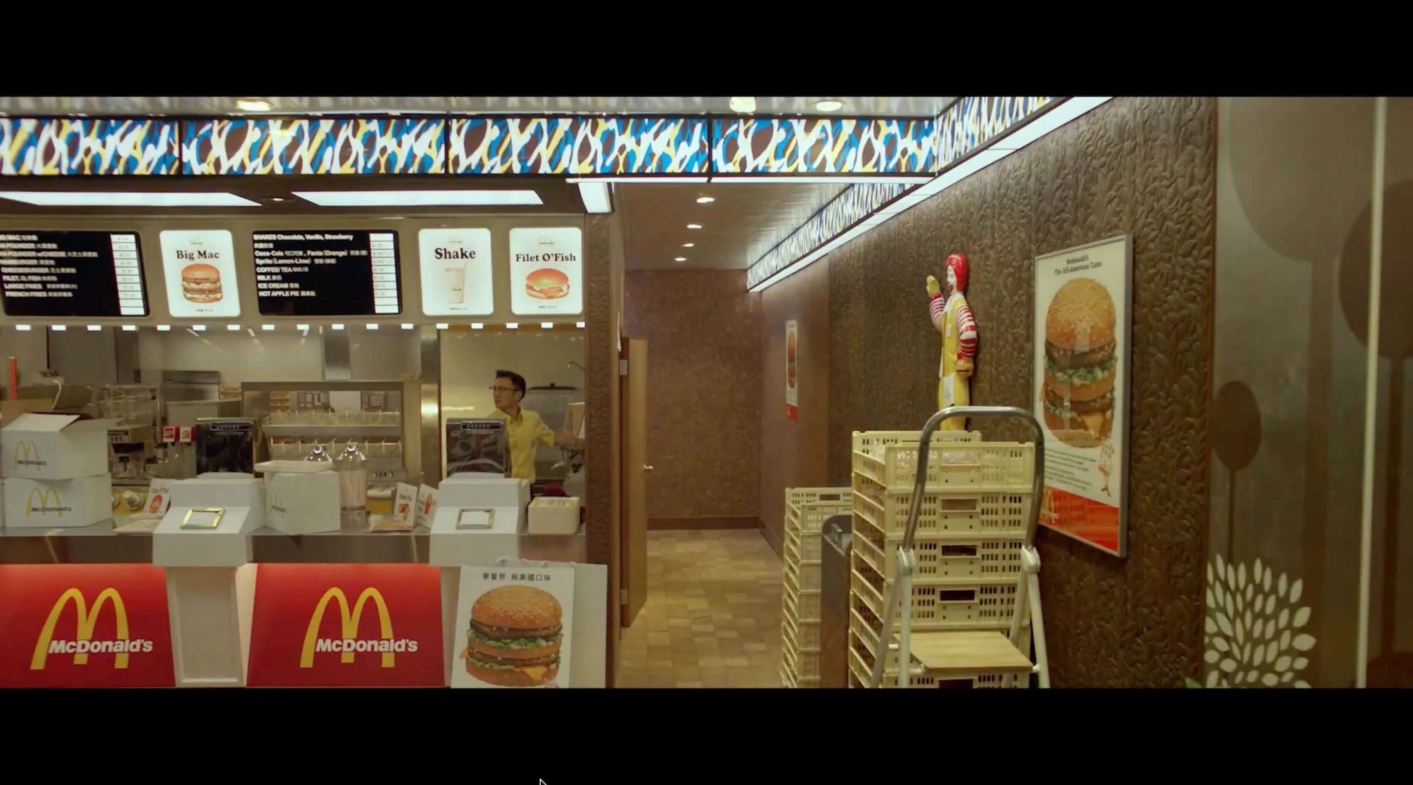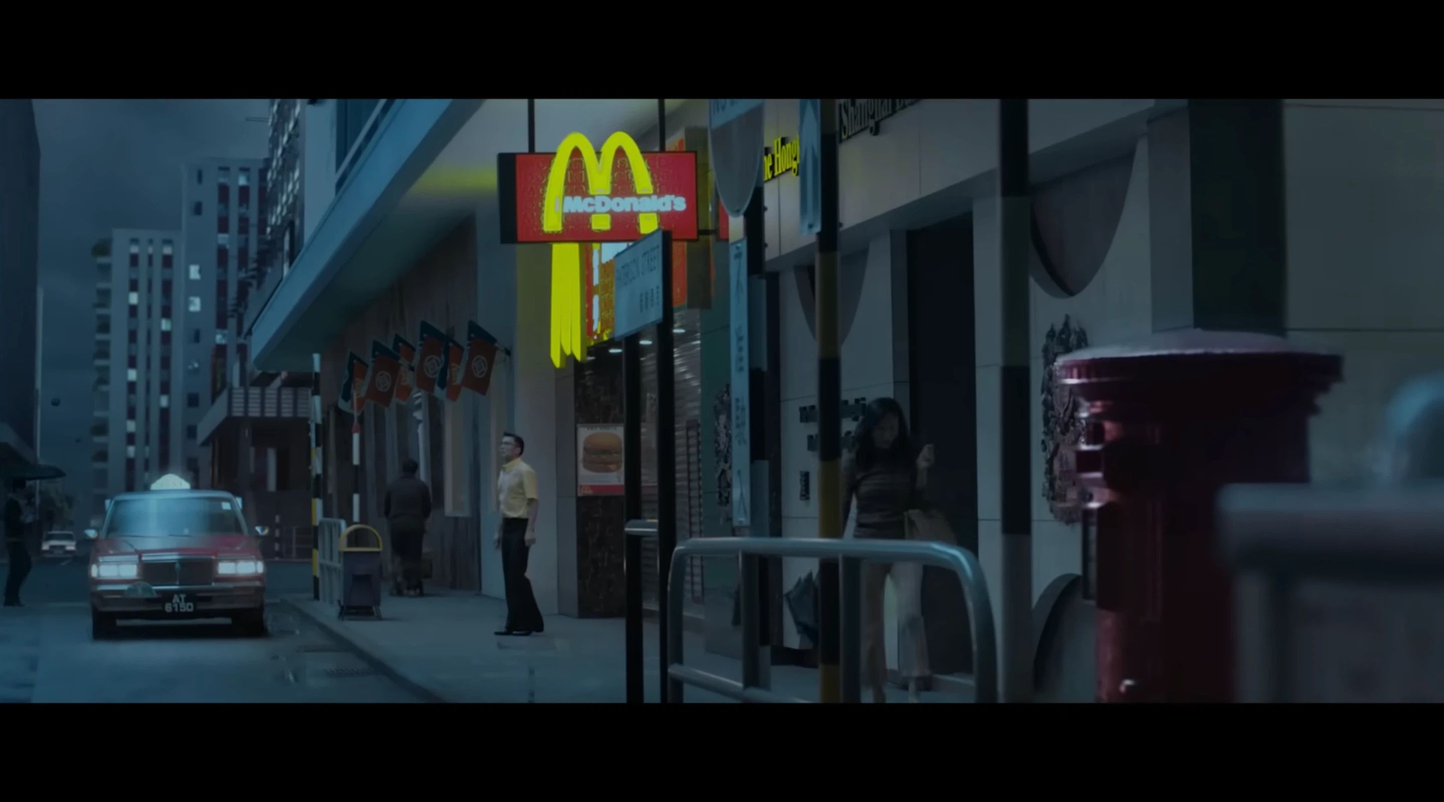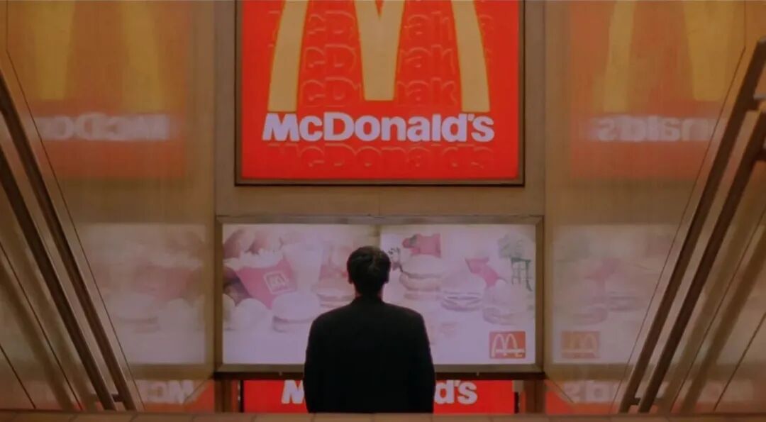 而在王家卫的《堕落天使》中,杀手黎明在巨大的麦当劳「M」字招牌下出没,餐厅中被陌生神经质女子莫文蔚盯上,回到门口被雨拦住脚步,又一起冲入雨中——电影场景将麦当劳塑造成现代都市中疏离与偶然相遇的舞台,折射出后现代香港的孤独与不确定性。