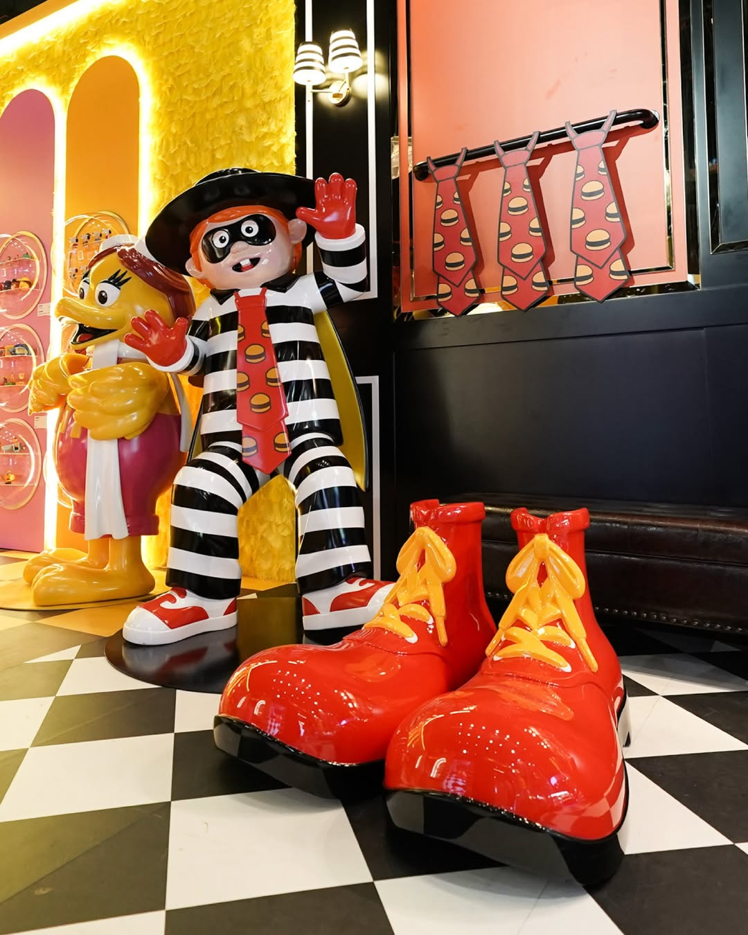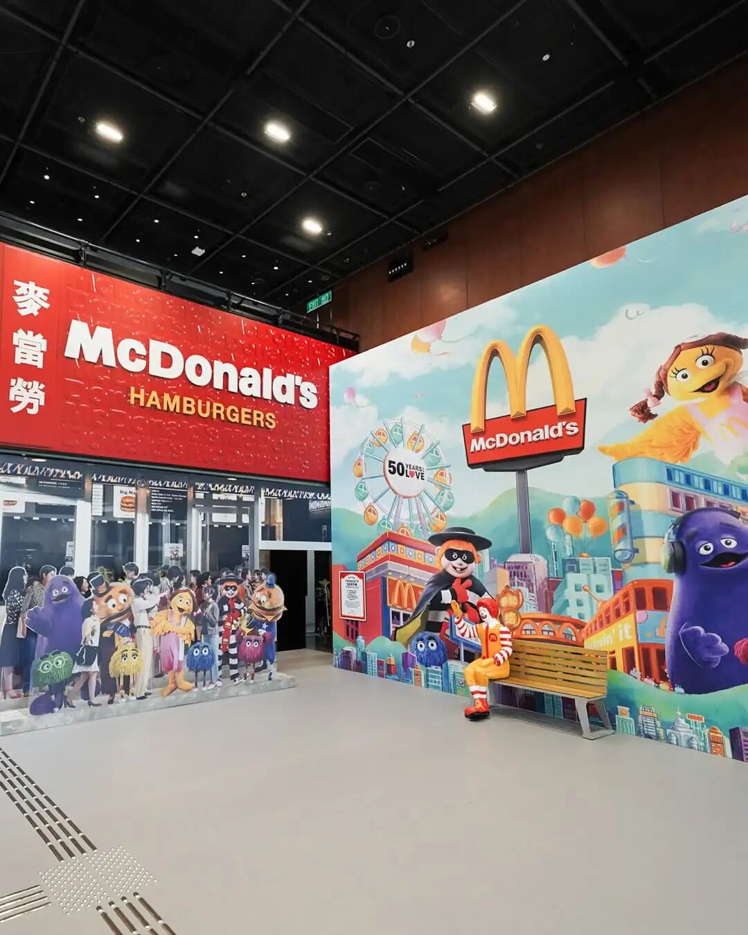 户外展区,20 位麦当劳叔叔集体 say hi,放大版苹果派、巨无霸、薯条化身热门打卡地标,带领港人回味半世纪的「i’m lovin’ it」时光。