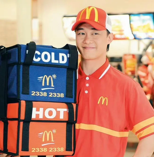不仅借势其「厨师」身份,推出限定联名餐点; 还邀请他主演微电影《重回 1975 年的起点》,以香港麦当劳首位餐厅经理朱源和的真实经历为蓝本,重现百德新街首家门店的开业盛况,带领观众回到半个世纪前香港街头的「味觉起点」。