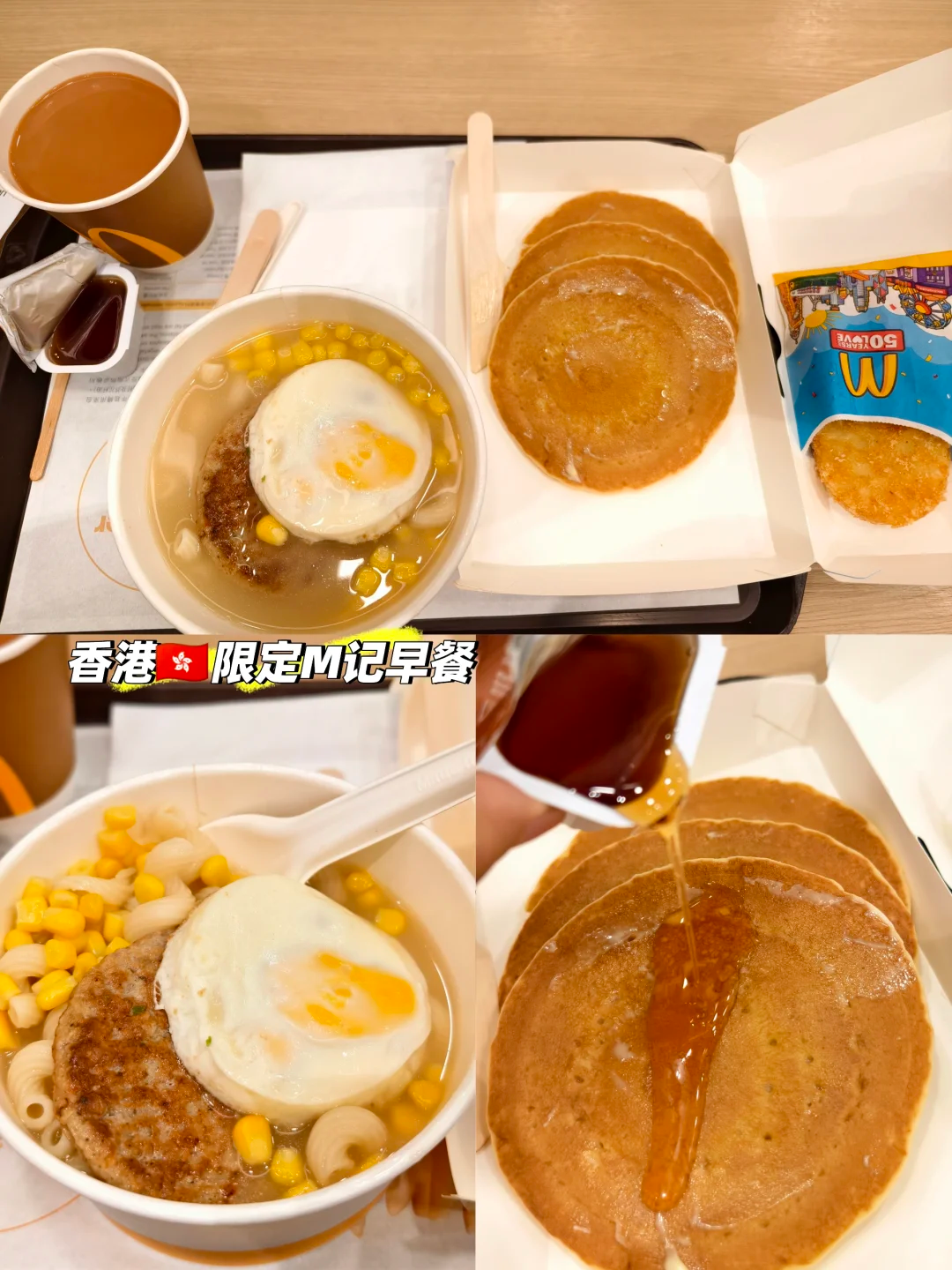 香港独特的中西文化交融底色,也为麦当劳的本土化提供了发挥空间,香港麦当劳既保留美式快餐基因,又积极适应本地饮食文化,推出多项特色产品,如早餐扭扭粉、松饼、港式奶茶等融合菜品,同时每月更新 2-3 款限定产品,满足了香港消费者的口味需求,构建出独属于香港的的麦当劳风味图谱。