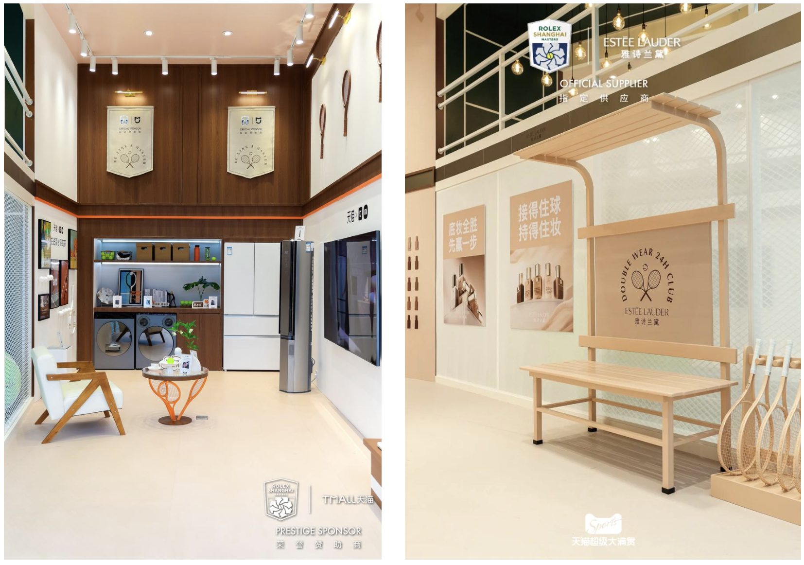 而当走入小米米家的展区,一台小米大屏电视将人迅速带入热血的观赛氛围。小米米家以全面的智能家居设备,让运动的激情融于质感生活的日常。另一方面,作为美妆品牌的雅诗兰黛更是巧妙,打造了一间球员梳妆间,将粉底液设计成储物柜,以裸色网球风兼顾了优雅与力量感。消费者可以在这里拍一组时下流行的人生四格,还能实测其「扒脸持妆」的底妆实力,足以令人安心挥洒热汗。