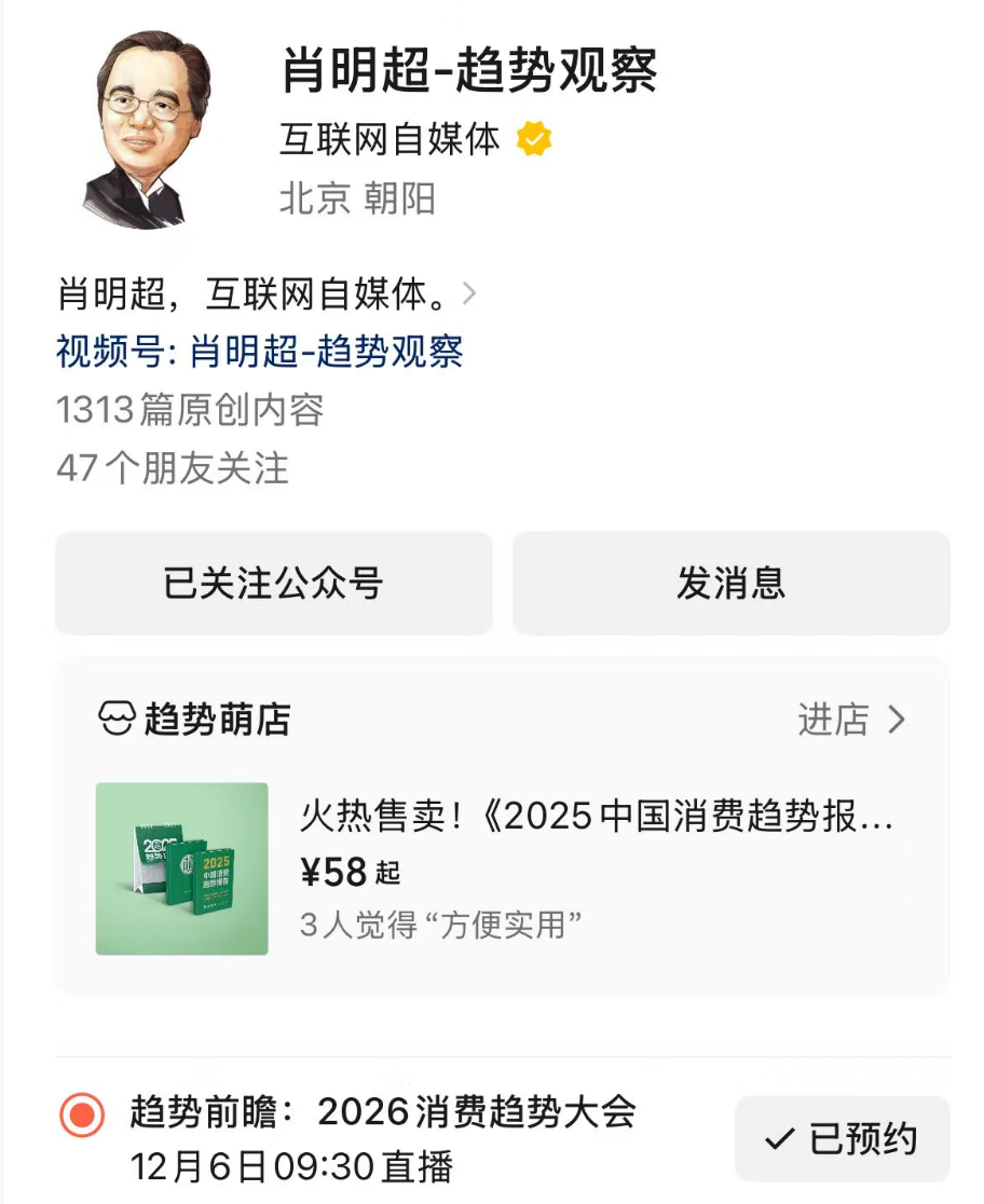 趋势报告内容库:旗下的《肖明超·趋势观察》媒体,持续运营了 12 年,累积发布原创趋势文章 1200+ 篇,500万+ 字,堪称「中国消费趋势的记录和见证者」。