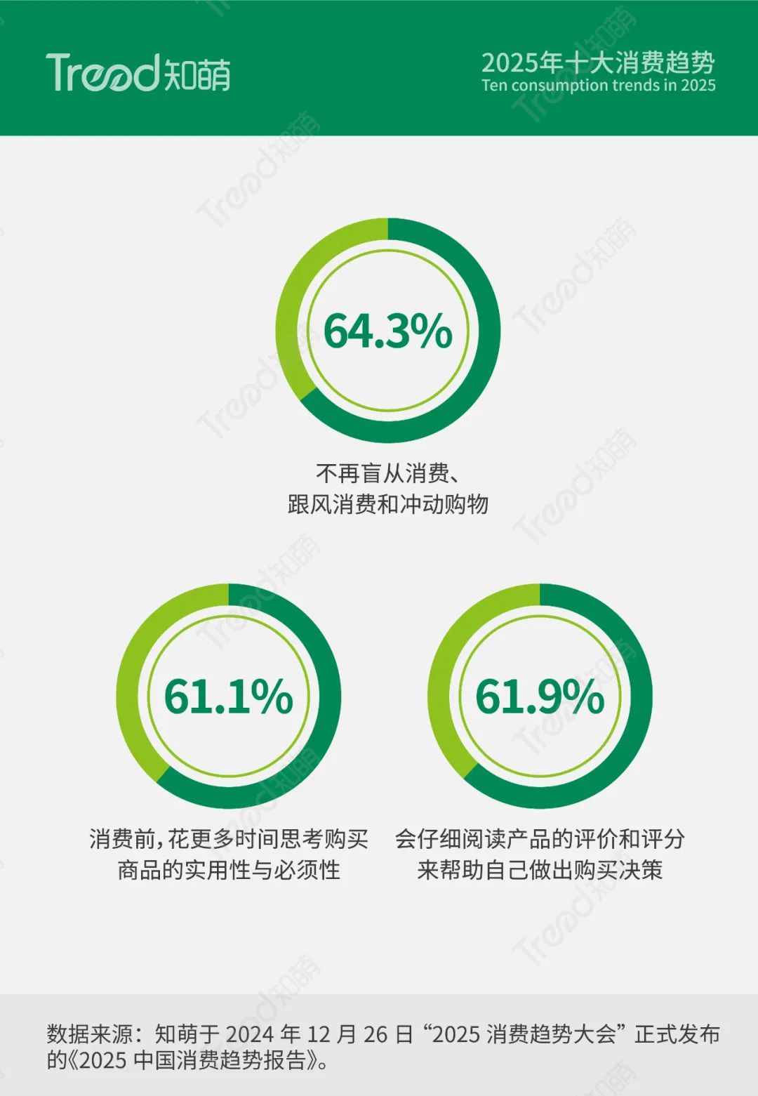 如今的消费者,不再被华丽的营销话术所迷惑,而是执着于产品的本质价值。我们的趋势研究显示,64.3% 的消费者表示已经告别了盲从消费,他们会仔细比对成分、研究评测、参考真实用户评价。