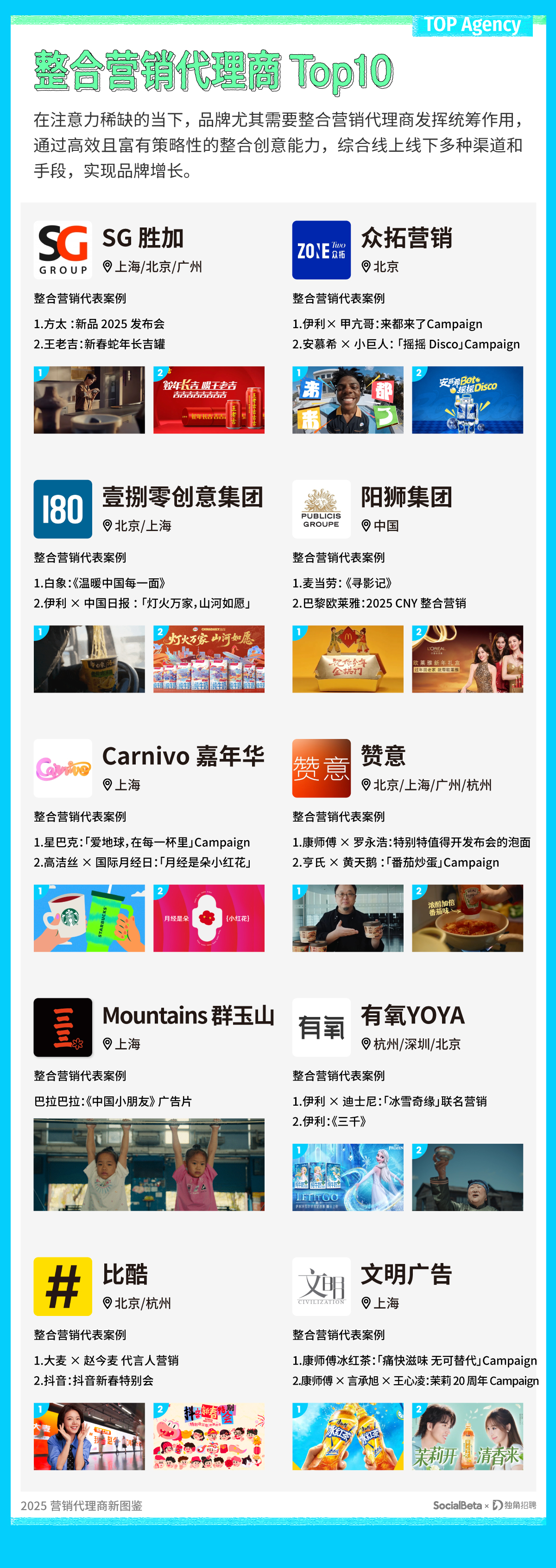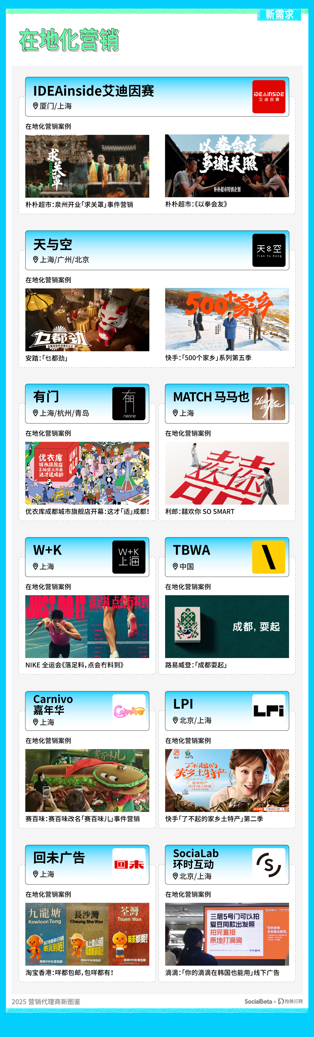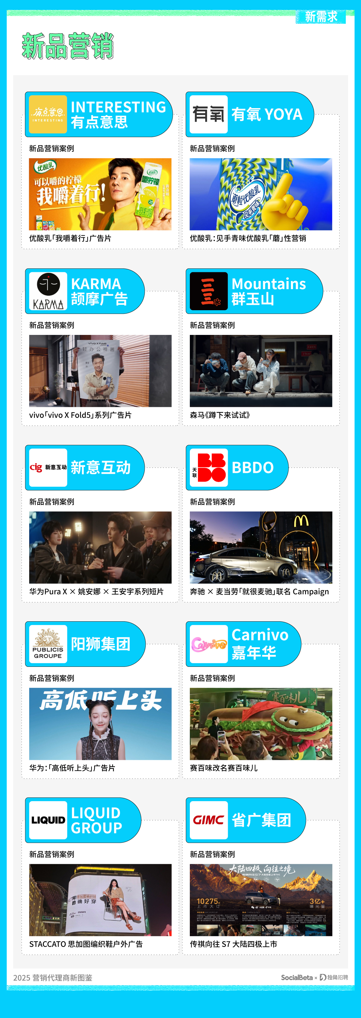 ps,上述公司所呈现的作品并非皆为全案代理,相关案例可在 SocialBeta 网站或「SocialBeta Lite」小程序上查看详情。欢迎行业的小伙伴与我们交流,评论区留言提供更多信息和想法。