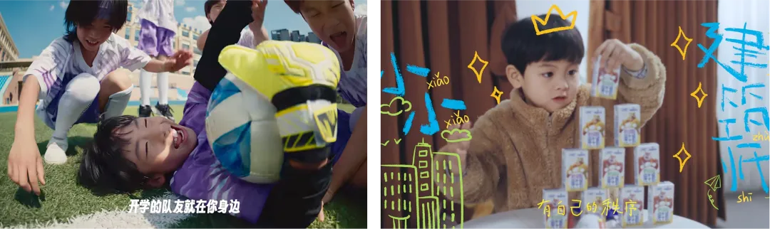 片中,QQ 星没有刻意规避产品的露出,而是将它作为串联故事线的重要一环,有机融入到完整的语意表达之中。不同于「强推式」的生硬植入,结合具体场景,通过视听语言的强烈反差,QQ 星得以让「原生活性乳铁蛋白=自护力=自由玩耍的天性释放」这条清晰的认知链落地,高效沉淀产品心智。