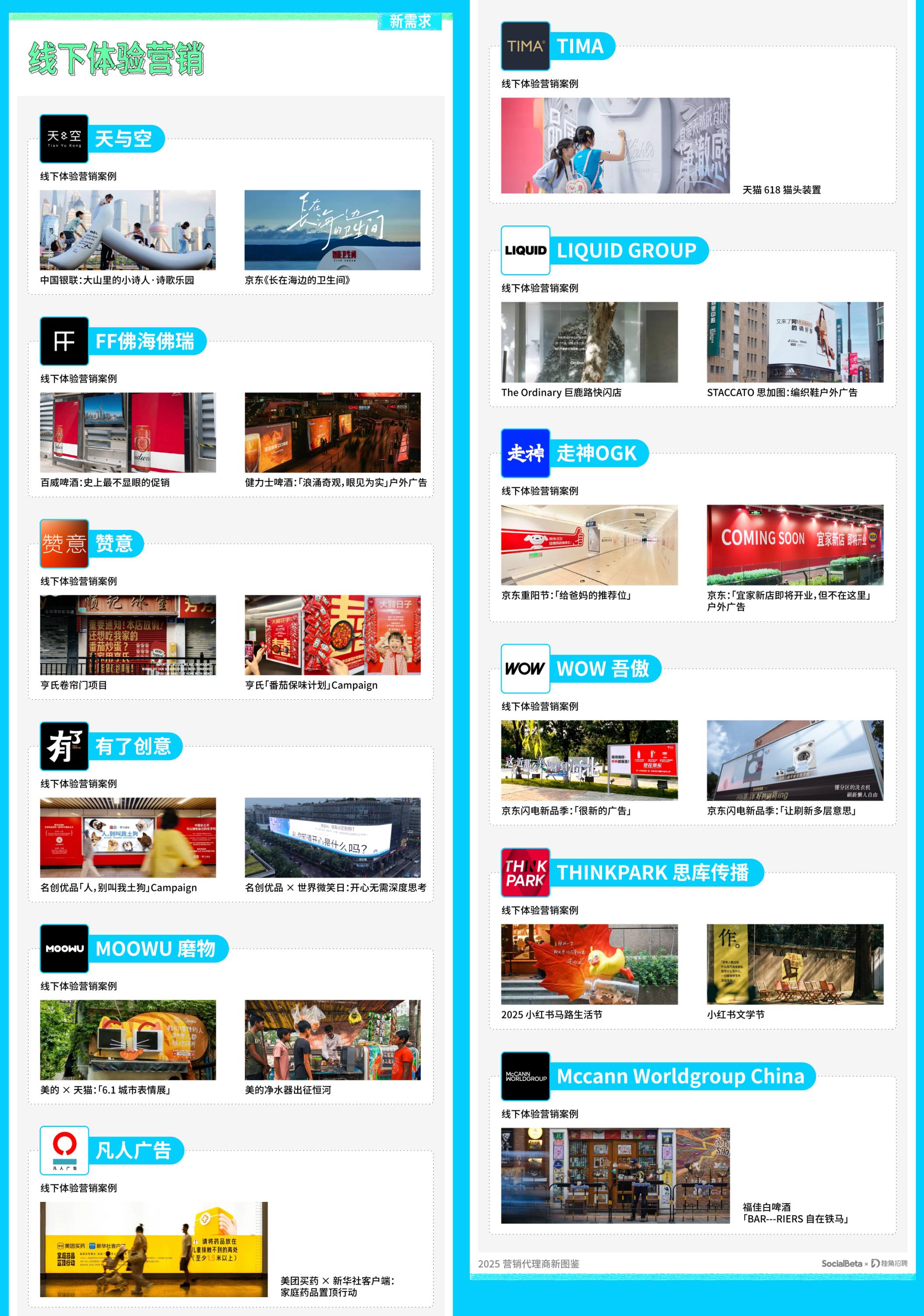在今年的新图鉴中,我们也为大家展示了线下体验营销背后的创意代理商,他们将生活场景转化为创意载体,为品牌传播增添新意。