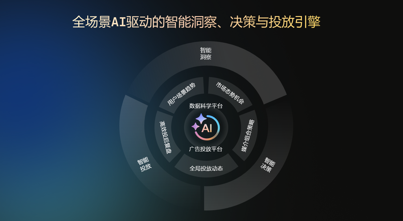 「AI Agent」深度融合了数据科学与广告投放能力,构建了「智能洞察、智能决策、智能投放」三大核心引擎。品牌方无需深谙复杂的投放技术,只需用自然语言向 AI Agent 描述营销目标,如「希望触达一线城市有育儿需求的新中产妈妈,提升高端奶粉品牌认知」。Agent 便能自动理解意图,基于全场景数据洞察,实时规划出高效的媒介组合、预算分配策略,并在合适的时机(如下班后家庭放松时段)、恰当的设备(如家庭智慧屏或妈妈的个人手机)上,推送匹配的内容。这大幅缩短了从策略到执行的链路,让营销活动能够敏捷响应用户实时变化的意图与场景。
