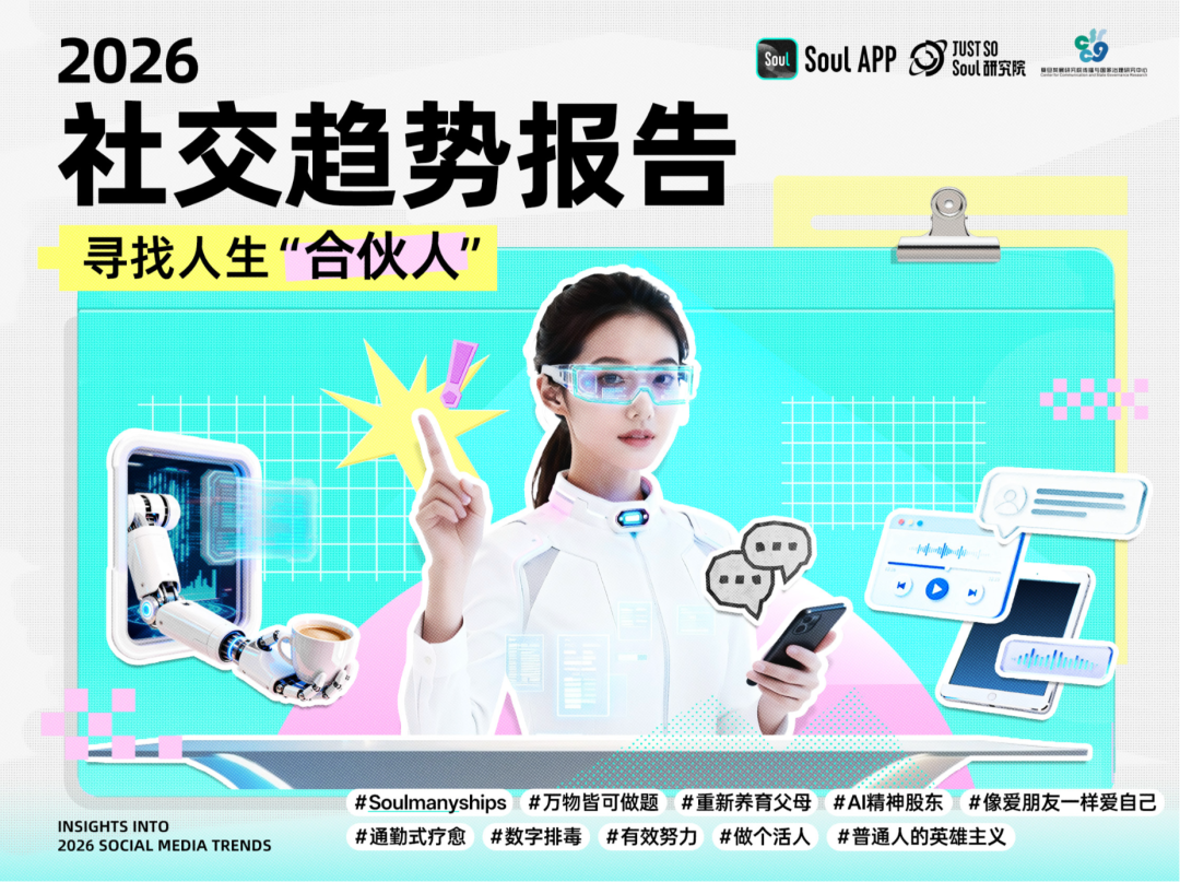 Just So Soul 联合复旦大学传播与国家治理研究中心、复旦大学价值认知传播与人智协同治理交叉创新团队发起调研,发布《2026 年社交趋势报告》,总结出当代年轻人社交行为及观念变迁的 10 大关键词。