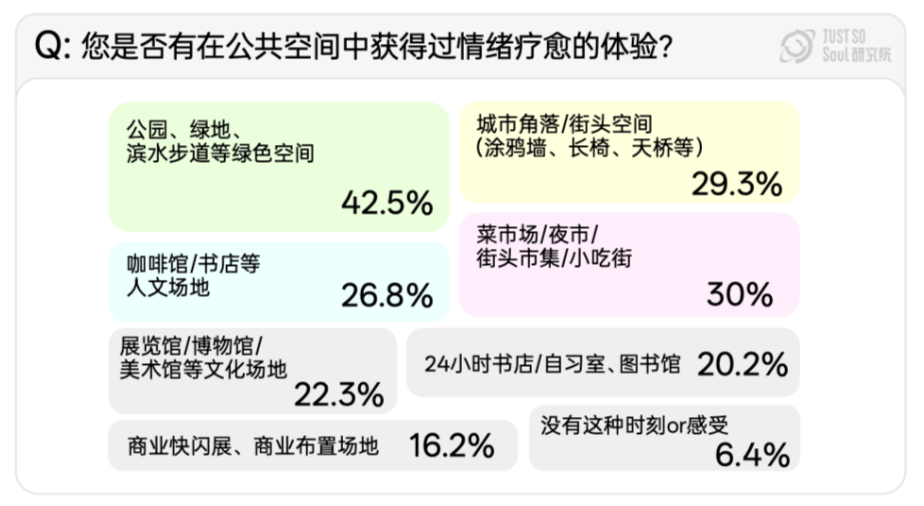 这种现象背后反映出的是,年轻人已经越来越反感「打卡」了,转而追求一种不以社会比较为前提的「体验感」。公园绿地、市集小巷、城市角落这些看似平常的「附近」被重新发现,成为触手可及的情绪疗愈空间。这种不做作的「松弛」,正在成为越来越多年轻人所追求的理想状态。