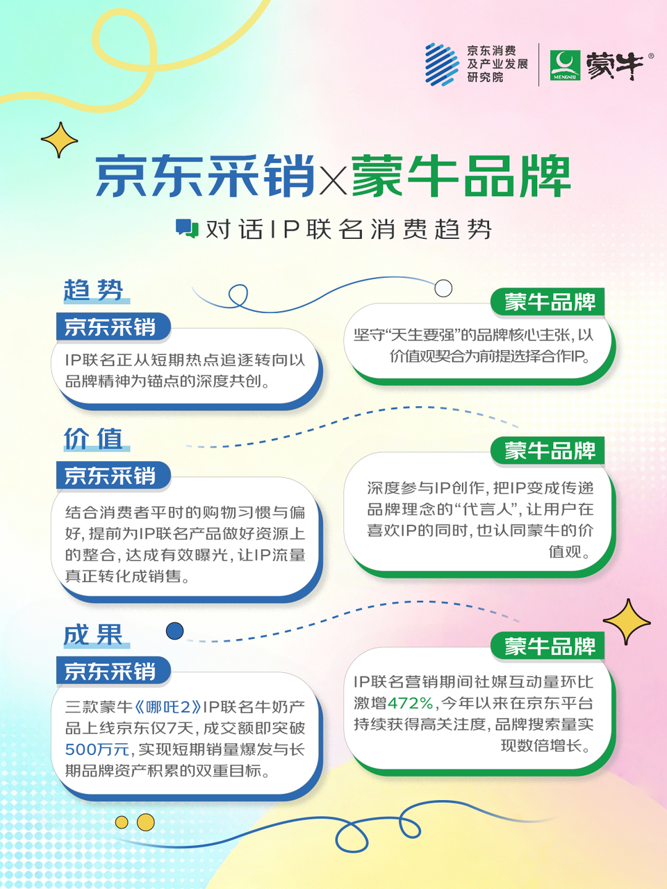 京东采销、京东消费及产业发展研究院,与伊利味可滋、蒙牛、屈臣氏、雀巢、沃隆等食品品牌展开深度对话,盘点 2025 年 IP 联名产品消费市场的特点。