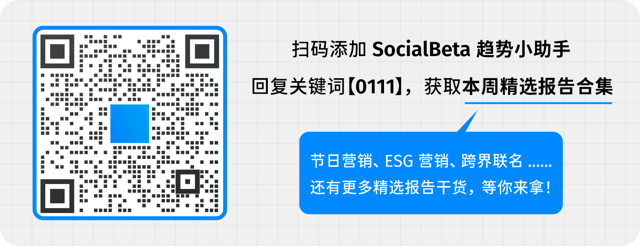 文末扫码添加 SocialBeta 趋势小助手微信,备注【0111】,获得本期部分精选报告合集。