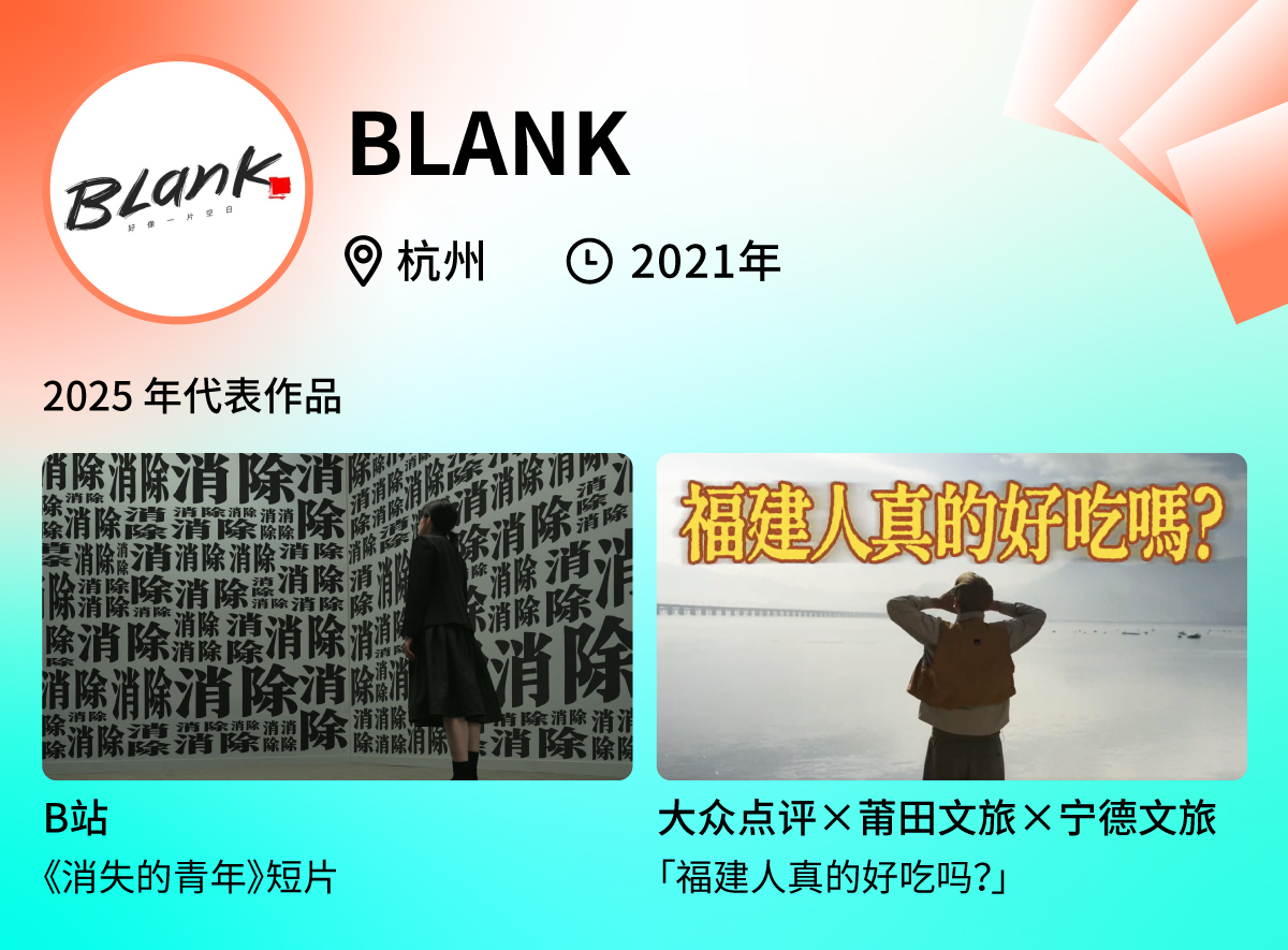 BLANK 想必大家并不陌生,曾出品过 B站《大魔术师》广告片、美团外卖 × 回春丹乐队「回春就在这一单」、小红书「生活大学开学典礼」Campaign 等圈内现象级案例。独立运营以来,他们迅速成长为行业中不可忽视的创意新力量。