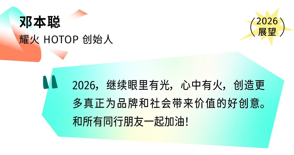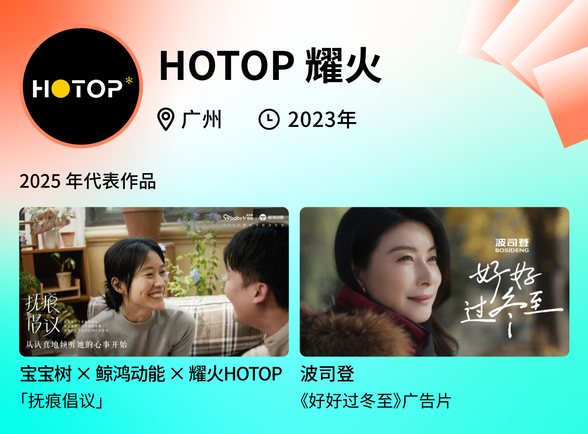 耀火 HOTOP 是胜加集团旗下核心内容创意营销机构,在刚过去的 2025 年,他们以精准前瞻的创意策略思维和开创性的内容营销能力,为客户创造了不少创意创新的广告作品。