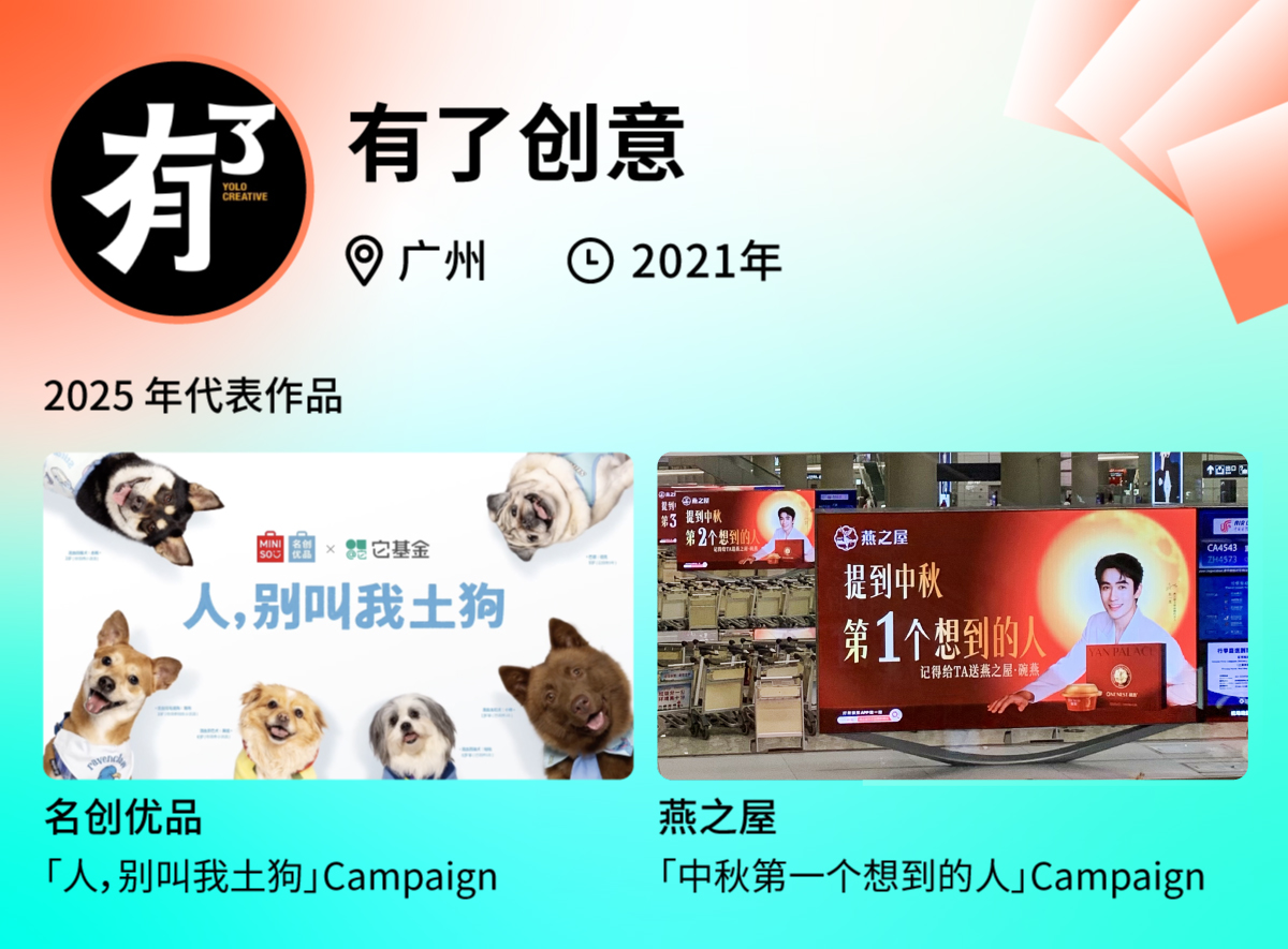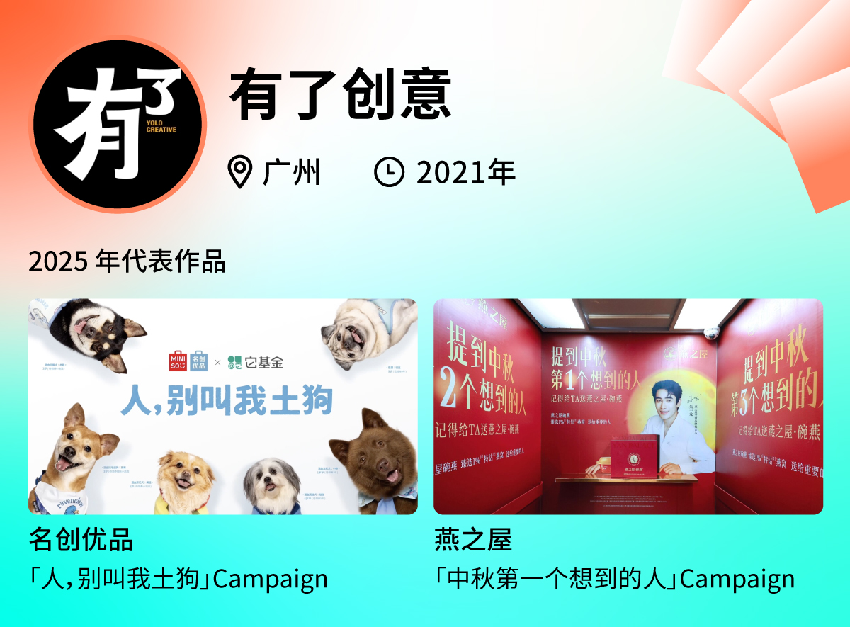 过去的一年,他们携手老客户名创优品,在小众营销节点带来极具传播度的创意事件。国际小狗日,他们带来名创优品 × 它基金「为中国本土犬正名」项目,在线下打造「人,别叫我土狗」Campaign,可爱吸睛的海报以及 social 的标语引发路人关注,达成本次公益行动有效传播的同时,助力名创优品塑造有温度的品牌形象。世界微笑日,他们在线下打造了一系列「叫板 AI 」的广告,吸引众多路人打卡,「开心无需深度思考」等相关话题在社交媒体上迅速发酵,引发自传播,持续提升品牌好感度。