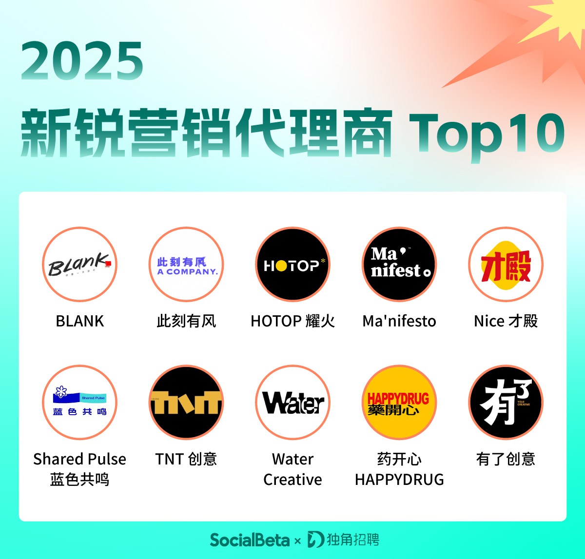 在本篇「新锐营销代理商 Top10」中,我们在 2021 年及以后成立的代理商中,结合近一年的创意产出、作品风格特色与服务项目等多维度综合考虑,为大家挑选了 10 家年轻有实力、拥有细分领域特色的新锐营销代理商。