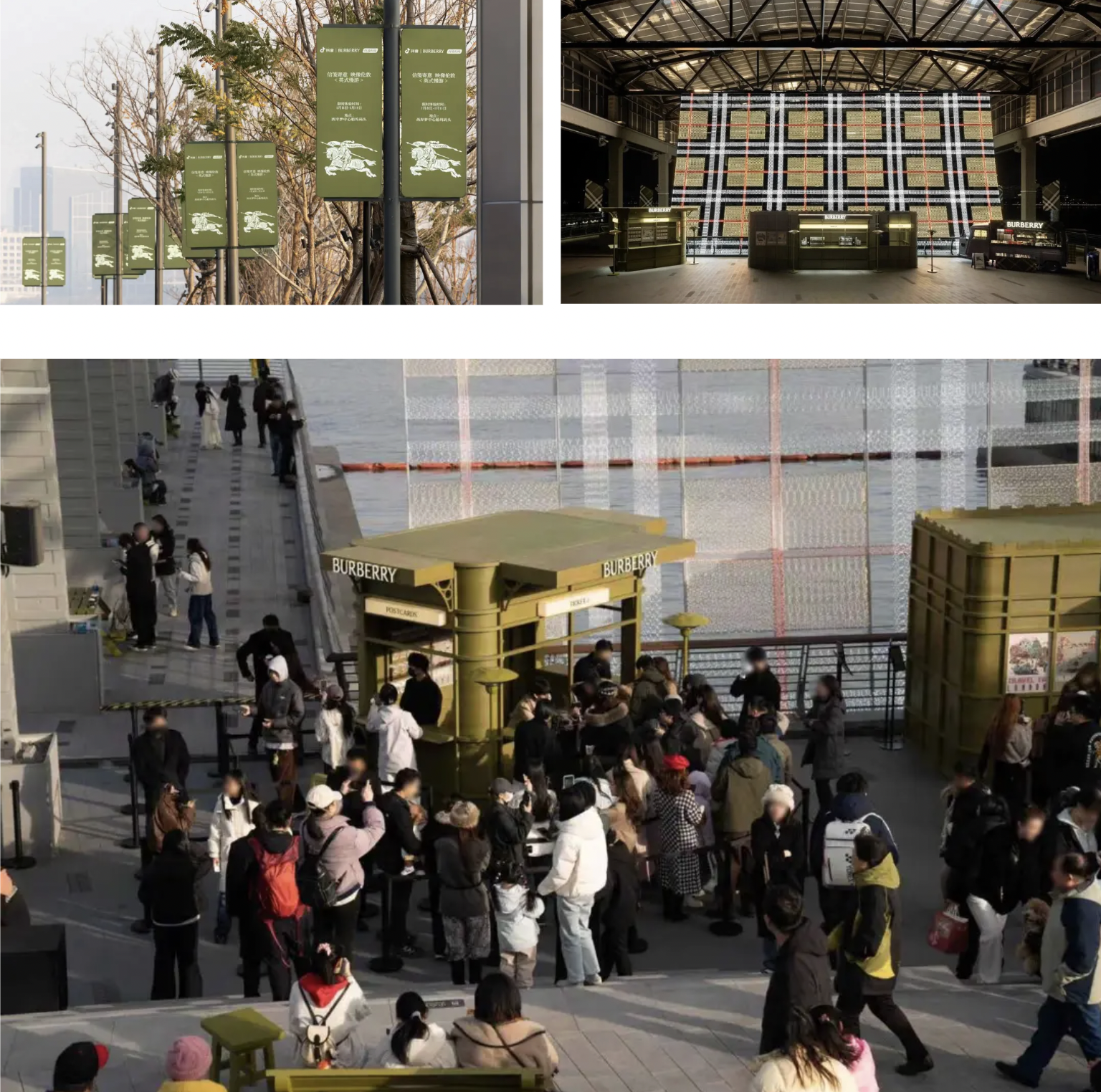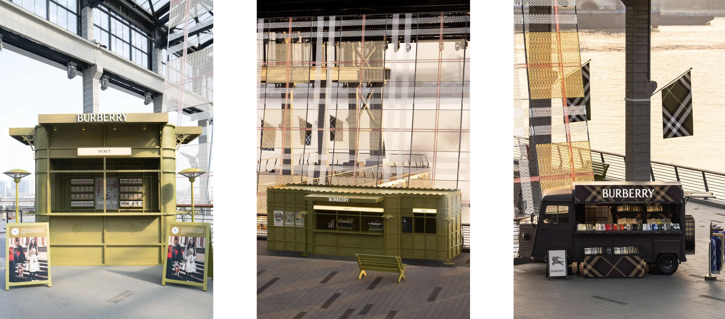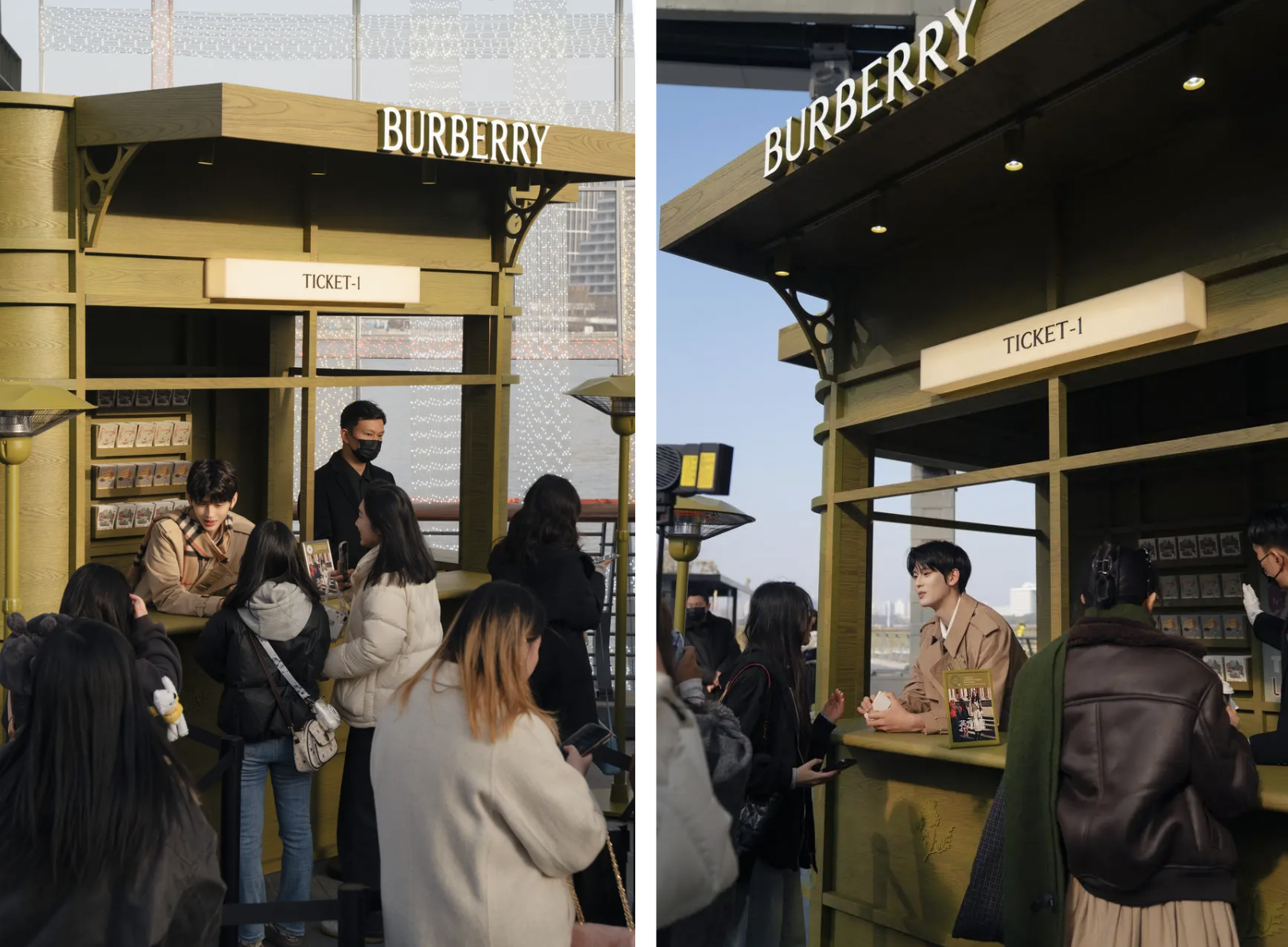 沿着现场铺陈的慢游动线,票务亭、咖啡亭、快闪围巾车、格纹灯饰等场景装置错落展开,让到访者在行走与停驻之间,近距离感受 BURBERRY 的独特质感与美学魅力,自然沉浸于英伦格调的美好氛围之中。