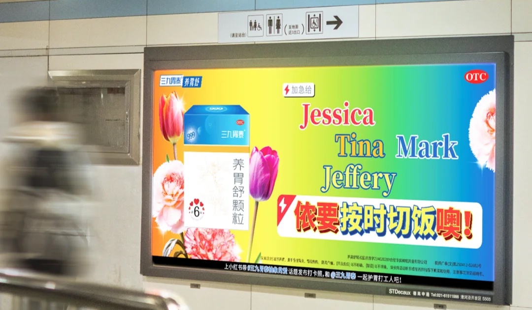 归根结底,户外广告的根本目的,都是为了吸引消费者关注、停留,进而接收到广告上的品牌信息。但 999 聪明的地方在于,其旗下品牌始终围绕产品的核心卖点及目标人群,进行创意发散:999 感冒灵紧扣「温暖」情绪,三九胃泰锚定打工人「养胃」痛点,999 皮炎平则牢牢抓住「快速止痒」的功能诉求。