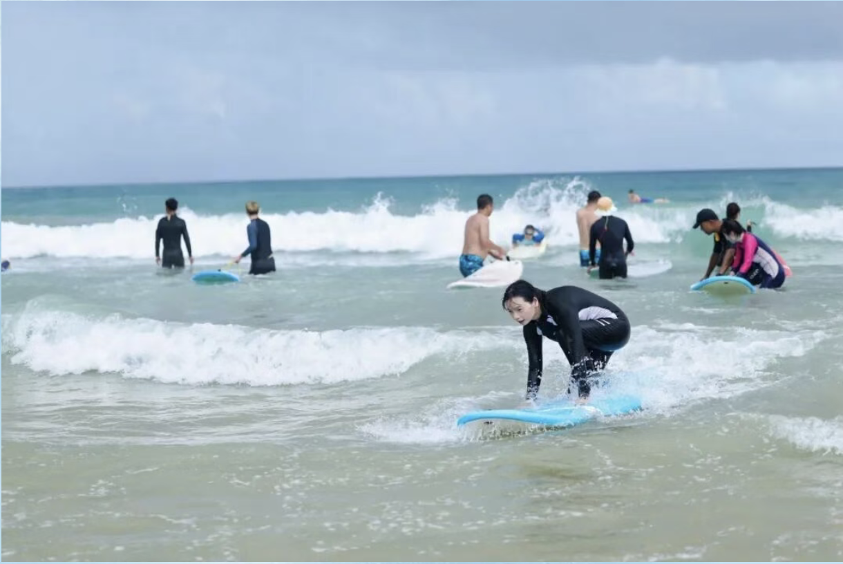 去年 8月 15 日-19 日,卓尔数科的一群伙伴奔赴海南万宁,以「浪尖嘉奖团」之名,开启了一场充满活力的海浪沙滩潮玩「兑奖之旅」!大家在日月湾冲浪,在加井岛的玻璃海里浮潜,转身又乘海上摩托破浪前行,引擎声划破海面,海风呼呼掠过耳畔,将所有烦恼都远远甩在了身后。