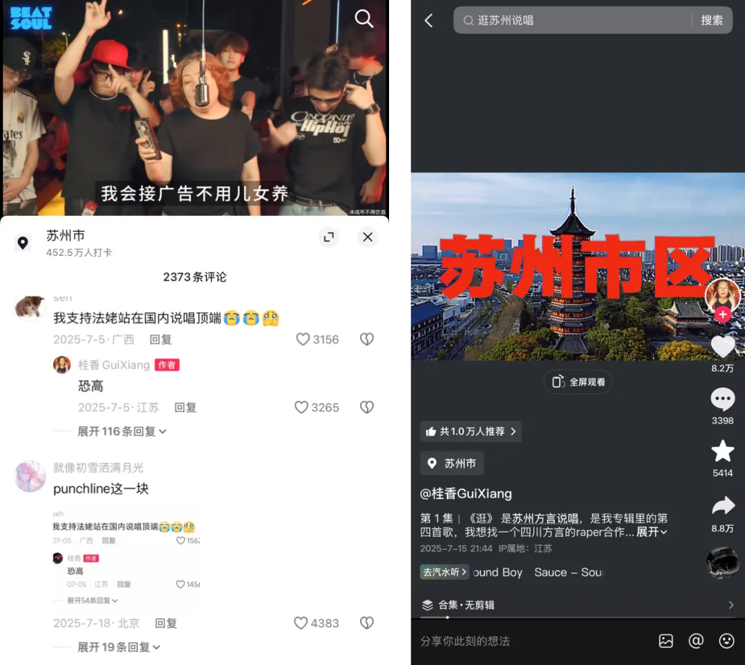 细细品味桂香阿姨的说唱内容,可以发现,其中不仅充满了硬核热爱的精气神,也因为融入了苏州地域文化,以及「过来人」的新鲜视角,成为说唱爱好者圈中独一份的存在。