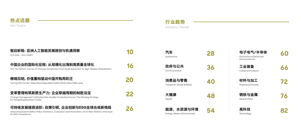 以「消费品与零售」行业为例,报告指出,中国消费品与零售行业正在经历一个重要的「换挡期」,进入需要更耐心、更精细化的「价值深水区」。在这一宏观背景下,影响未来行业走向的包括以下 10 个趋势: