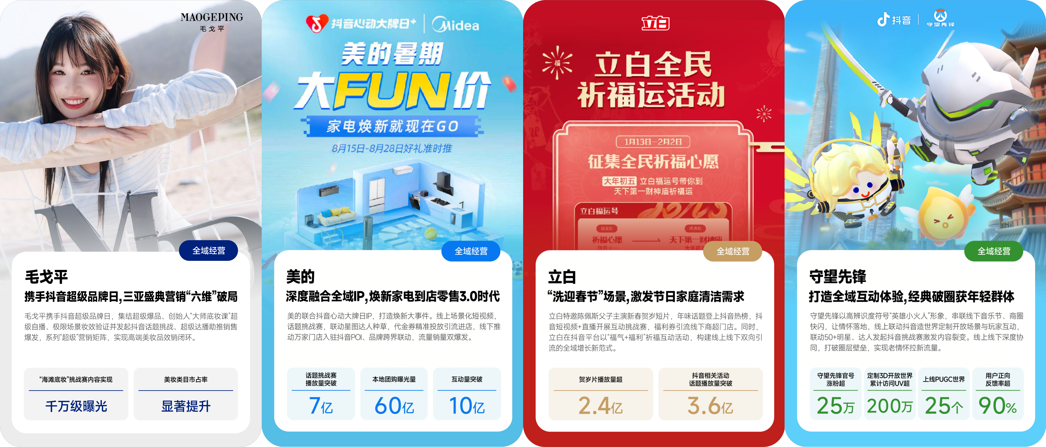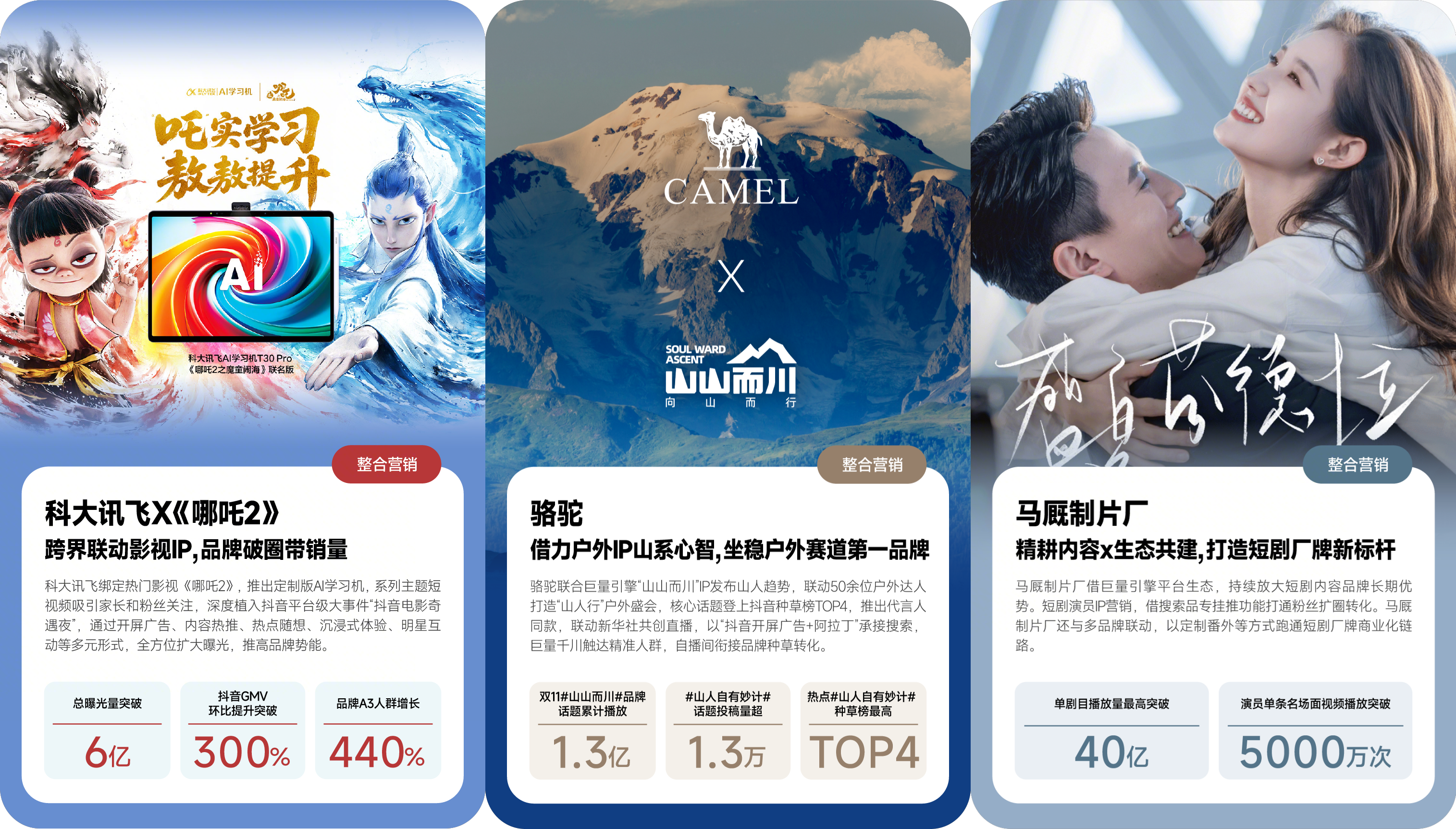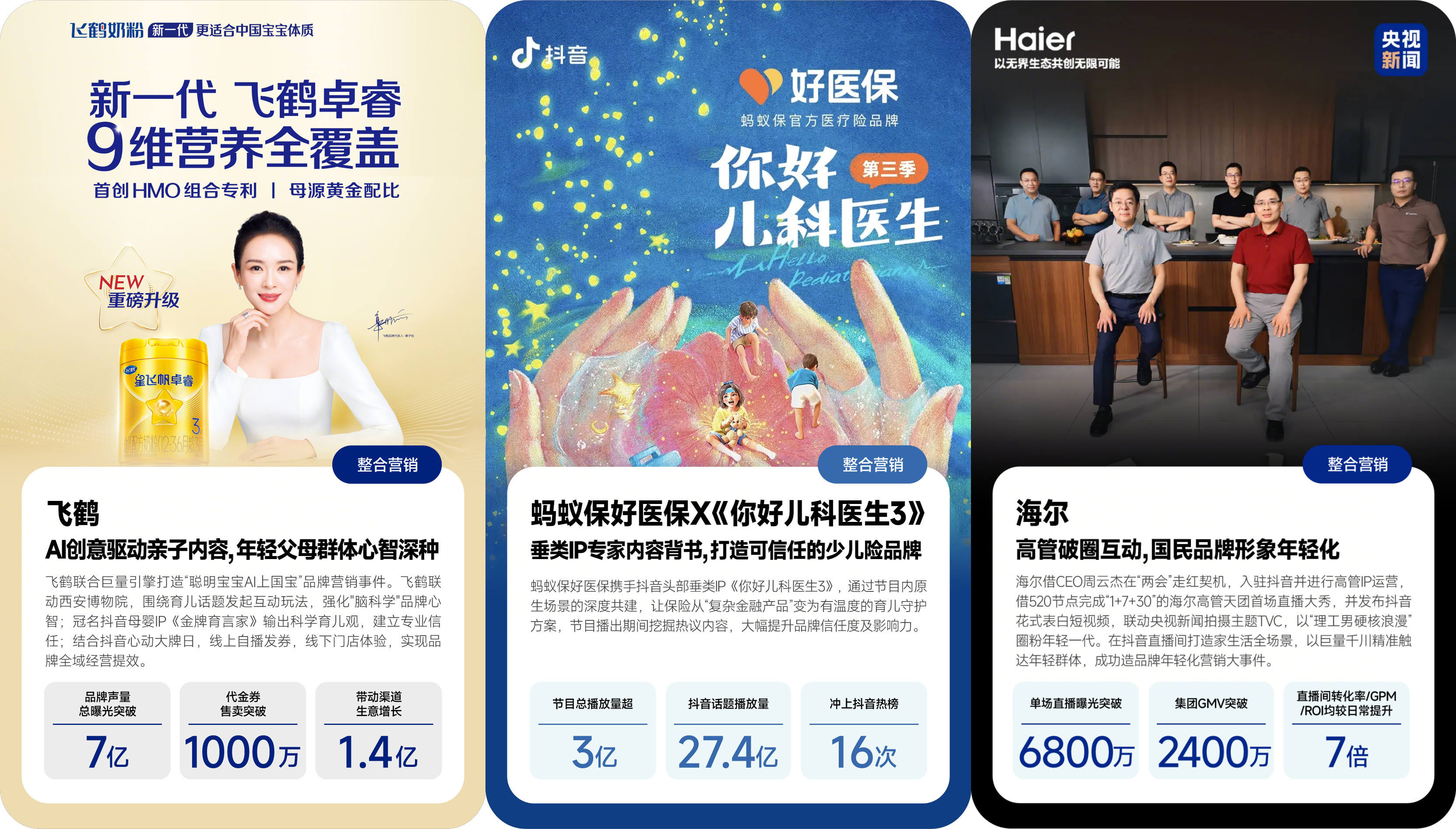 品牌结合巨量引擎的整合营销工具,打造多个优质案例,围绕统一的品牌叙事与转化目标,将内容表达、搜索触达、达人种草与交易场景进行有机衔接,有效将品牌声量沉淀为经营能量。