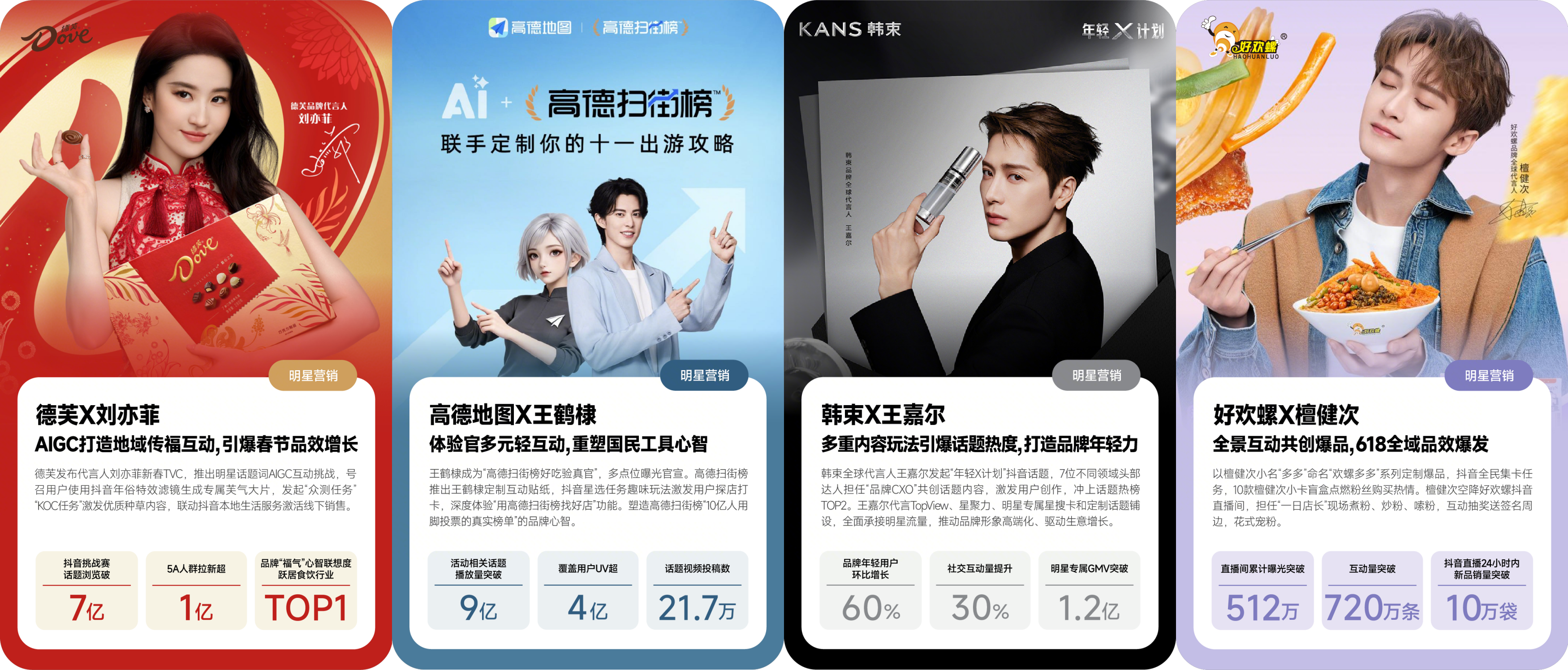 品牌通过巨量引擎的星图达人矩阵、抖音话题挑战赛构建「明星引爆 — 达人引领— UGC 发酵」等系列传播链路,并凭借平台精准数据能力锁定核心人群,实现流量的高效转化,让明星的短期热度转化为品牌长期的用户资产与心智沉淀。