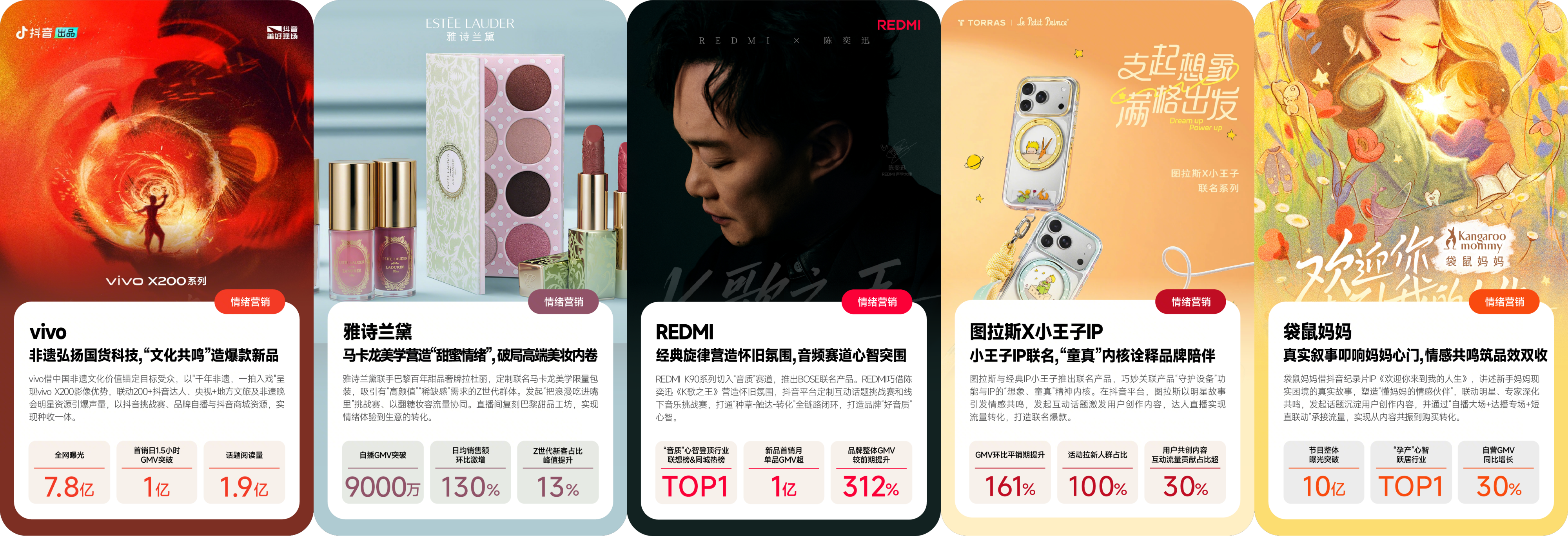巨量引擎也与品牌携手共创多个情绪营销新玩法:从用户真实的生活场景出发,挖掘核心情绪洞察,以抖音短视频、直播等多元内容形态放大情感共鸣;通过话题挑战赛、用户共创等方式激发 UGC 传播,并借助达人矩阵种草与交易链路的高效协同,将用户的情绪共鸣转化为实际的购买行为,将情绪营销的成果沉淀为品牌人群资产,让单次的情感触达转化为可持续的品牌经营动作,情绪由此成为连接人群、内容与生意的关键纽带。