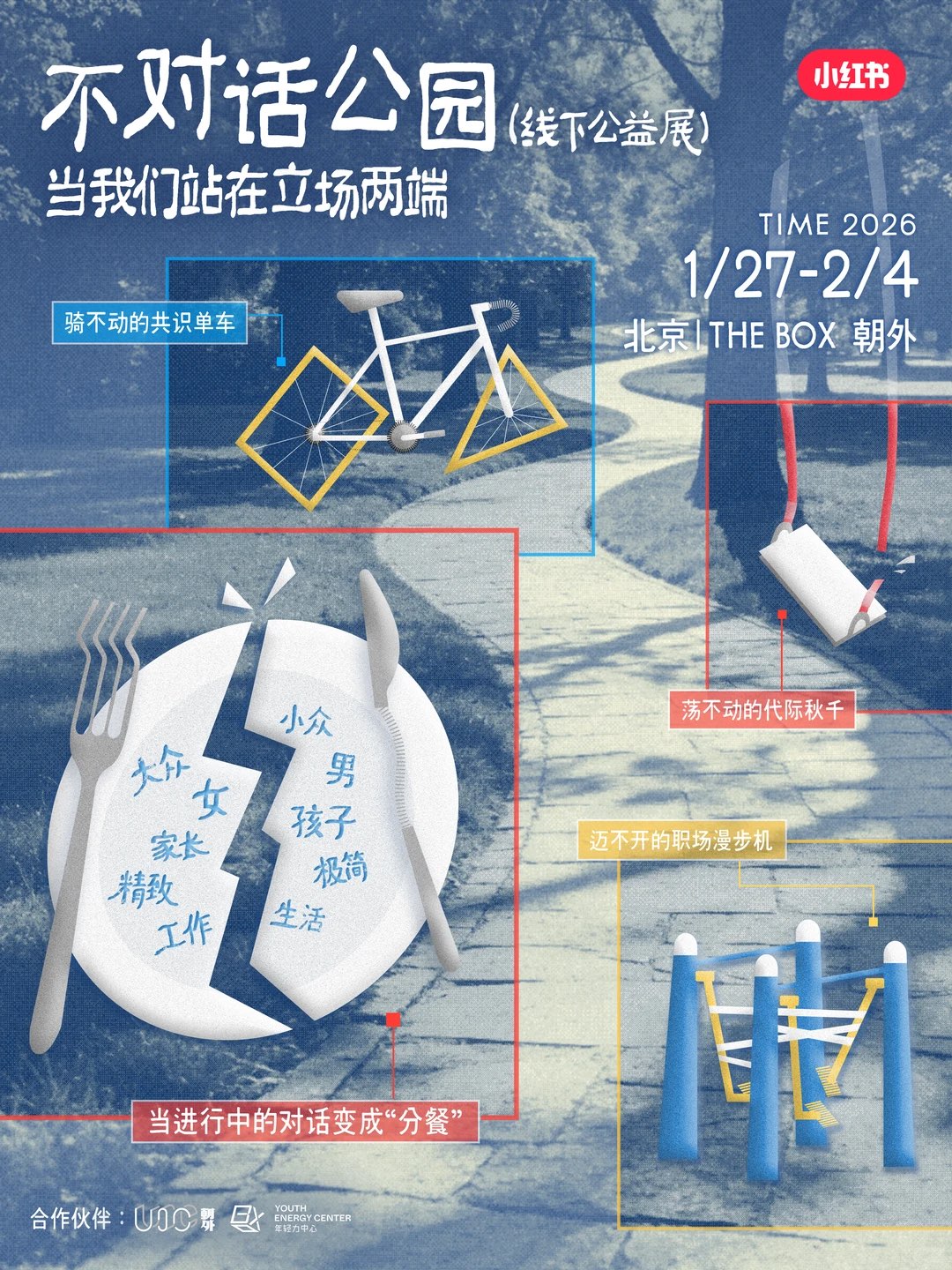 从这一洞察出发,小红书同步打造了一场名为「不对话公园:当我们站在立场两端」的线下公益展。