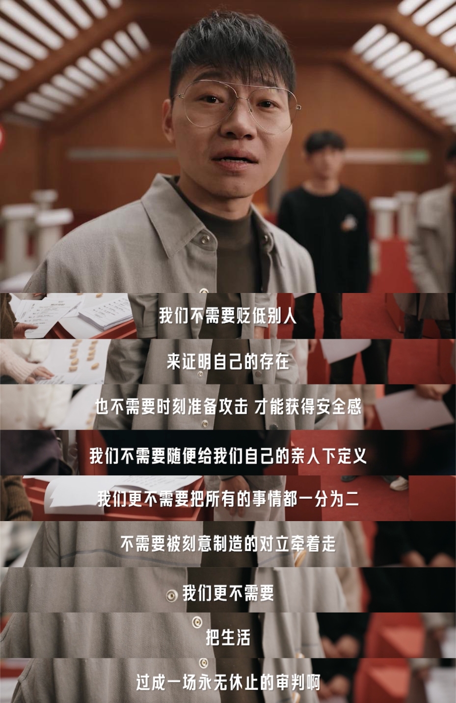 可以看到,短片的真正意图,并不在于揭示「谁在制造对立」,而是以普通人的视角引导观众意识到「对立如何影响了自己」,进而让 TA 们对「反对制造对立」这一抽象议题,有了更具体的感知——反对的不是人和人的不同以及多元的观点,而是人为刻意制造的对立情绪。
