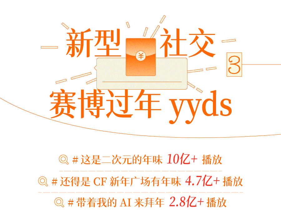 更进一步来看,技术改变的不单是拜年方式,也改变着亲密关系的传统定义。对于赛博一代而言,「互联网亲人」也是亲人,游戏好友、互关网友是重要的情绪陪伴。各大 IP 也积极为「自己人」攒局,#2025 抖音王者荣耀新春会 突破了 84 亿次播放。在游戏里放一场新年烟花,在同好群里热聊新番,这样的线上年会,才是不少年轻人心中有归属感的过年方式。