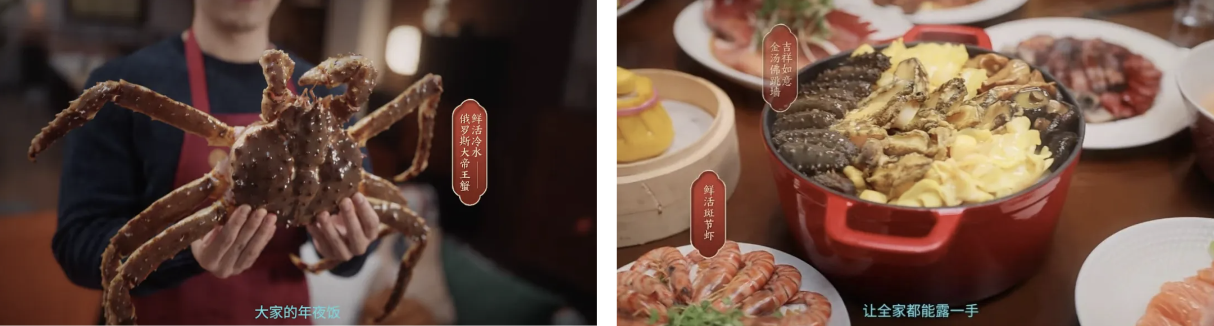 最后,针对春节的中心场景——年夜饭时刻,盒马更是提供了金汤佛跳墙、封神香辣蟹、俄罗斯大帝王蟹等新鲜方便的食材,既丰富了餐桌,也让家人共享动手的乐趣与团圆的温情。