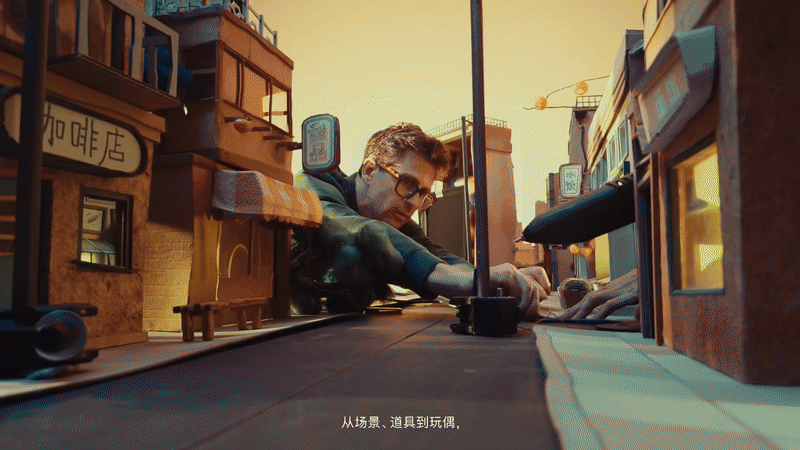 实拍之外,片中穿插的定格动画则构成了另一条关于想象力的叙事支线。由 BUCK 工作室手工打造的人偶、场景和道具,每一处细节都在 iPhone 的高清镜头下被精准还原。