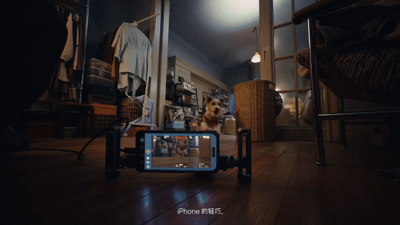 而这种沉浸感更得益于 iPhone 极其轻巧的机身。在以往拍摄动物场景时,巨大的专业设备往往会在无形之中形成一种压迫感,干扰动物的自然状态。而 iPhone 几乎可以做到「隐身」,甚至直接固定在动物身上,以第一视角带领观众「贴地飞行」。