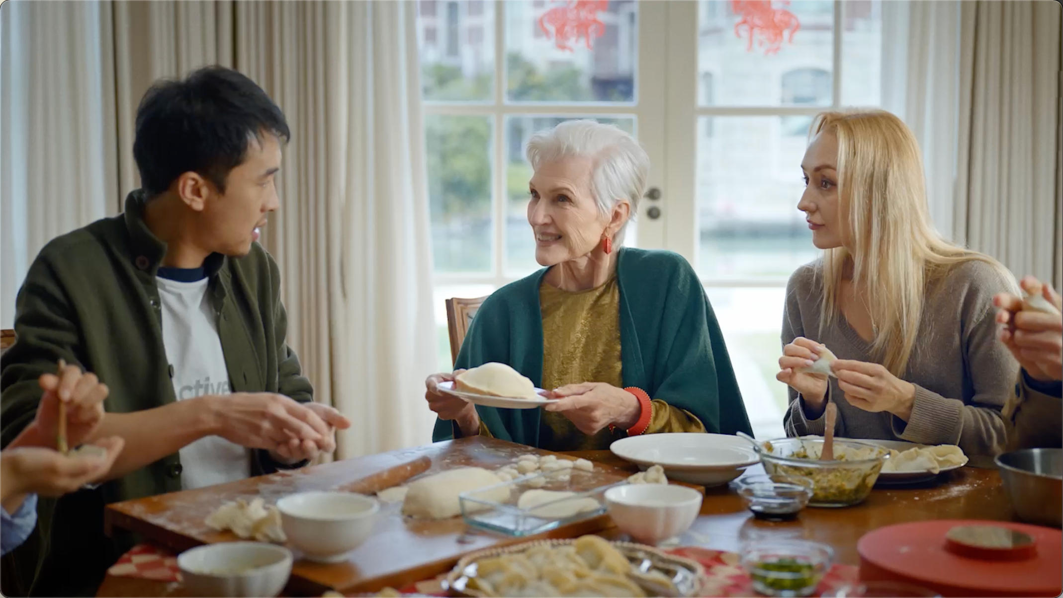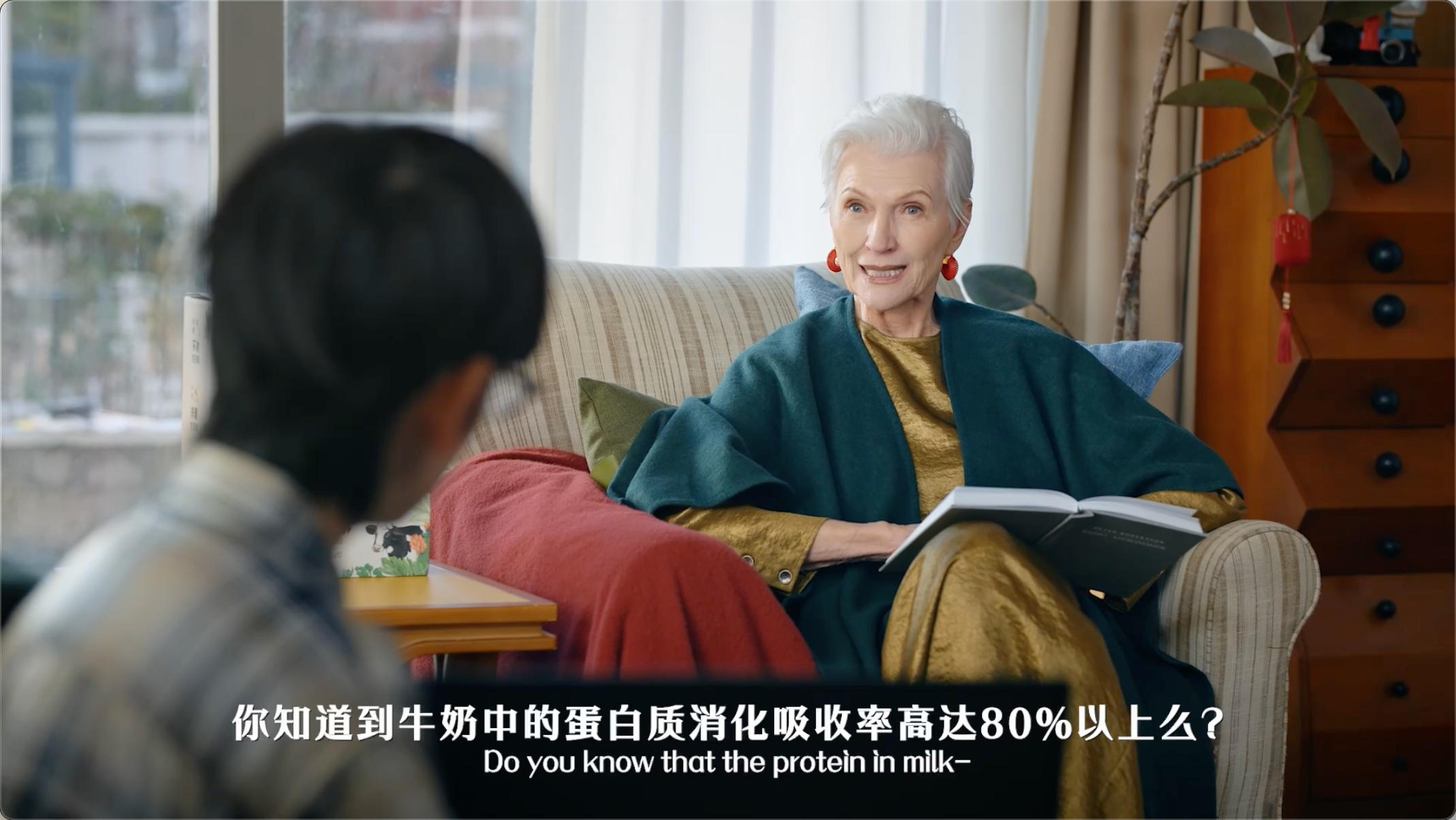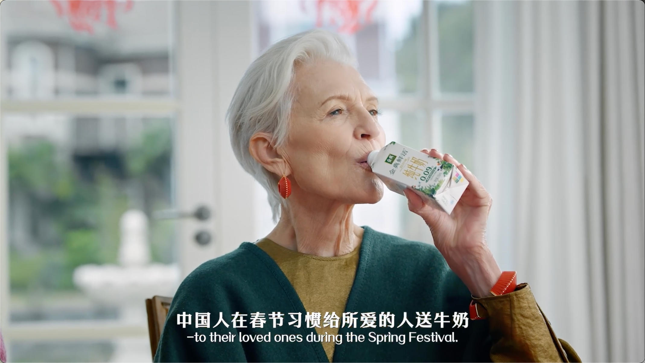 短片一开始,金典就借梅耶之口,说出了大众心中的疑问。选择一个外国面孔来讲中国新年,乍一看确实有些难以理解,但如果你对梅耶·马斯克有所了解就会发现,她与中国的关联度、与春节语境的贴合度,都让这个选择显得自然且成立。