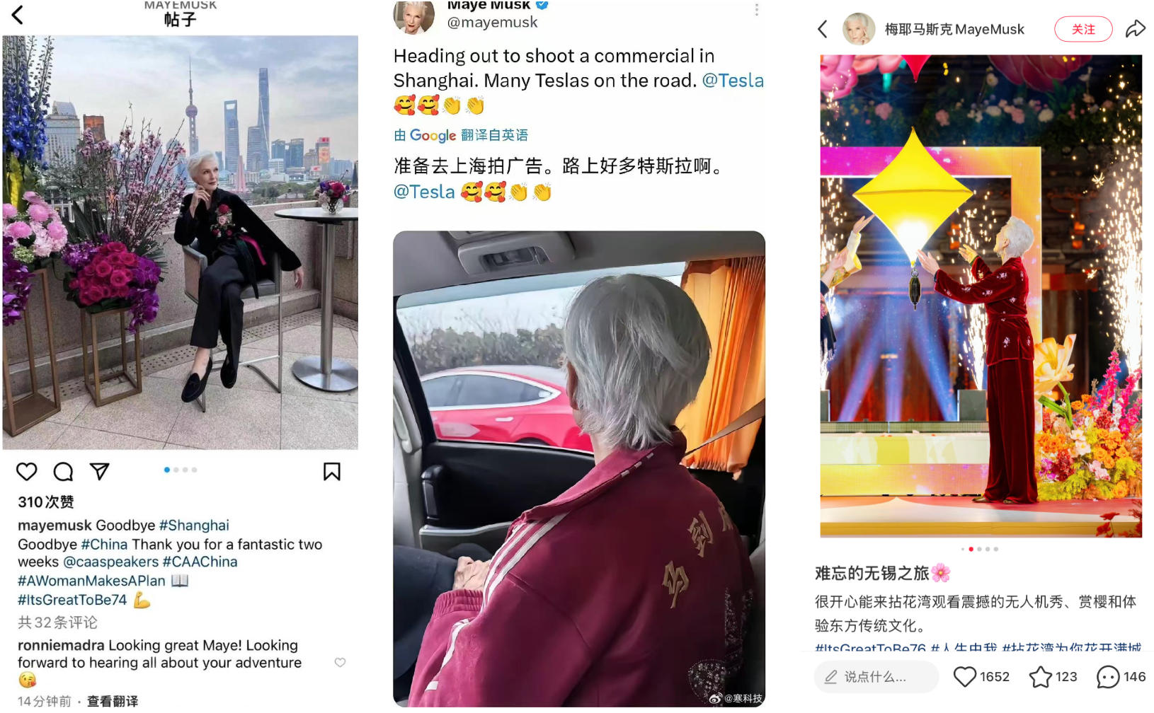 这不,就连马斯克的母亲,身兼模特、营养师、作家等多重身份的梅耶·马斯克,也在金典的邀请下,加入到这场中国新春的探索中来了——