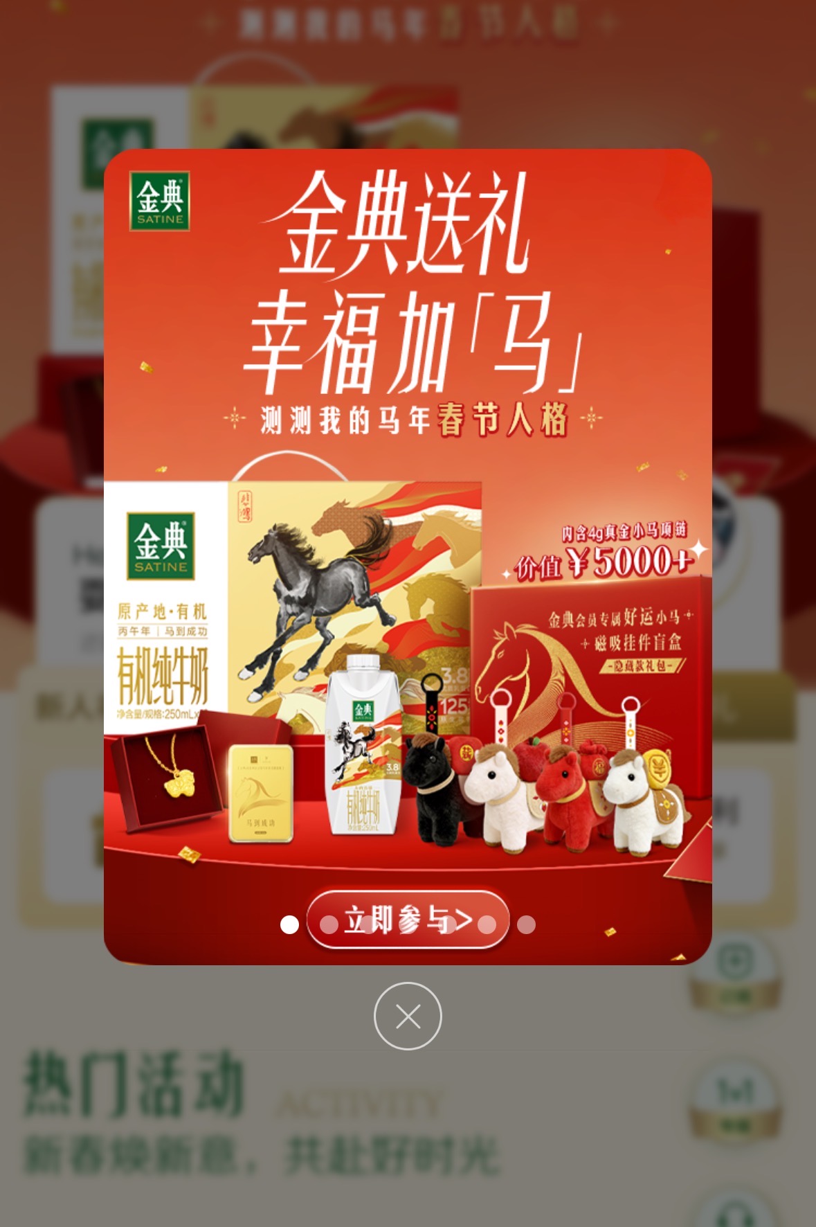 甚至,金典还在小程序会员活动中,玩了一把首富谐音梗。除了赠送小马盲盒外,金典特别设置了一个隐藏款大礼——4g 足金小马项链,「马 4g」是指谁应该不言而喻了吧。