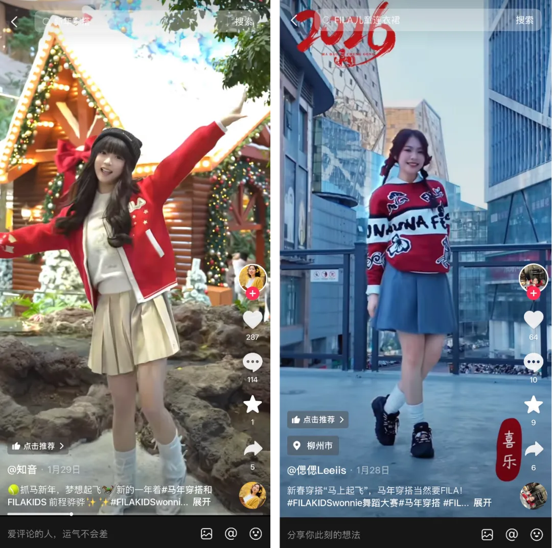 更重要的是,FILA KIDS 在此次 CNY 营销中,以内容、产品、门店互为支撑,完成了对「抓马」这一主题的多层次诠释,让「抓马」成为 Gen Alpha 的全新个性标签,并以此为切口,进一步构建起品牌与年轻一代家庭间的深层情感共鸣。