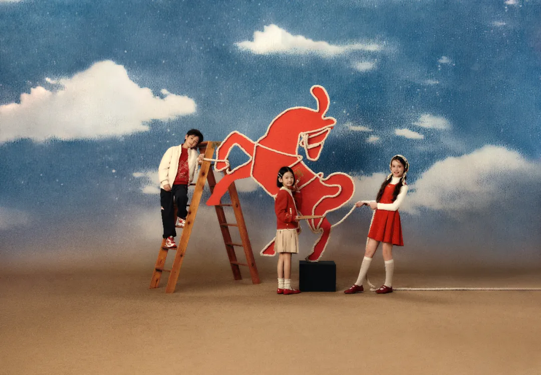 其次,FILA KIDS 此次提出的「抓马」概念,在儿童服饰品牌普遍沿用母品牌新春主题或聚焦单一产品营销的背景下,不仅跳出了传统生肖的叙事逻辑,与马年新春节点巧妙呼应,更与当下 Gen Alpha 的态度深度契合,诠释出他们肆意生动、天马行空的真实一面。