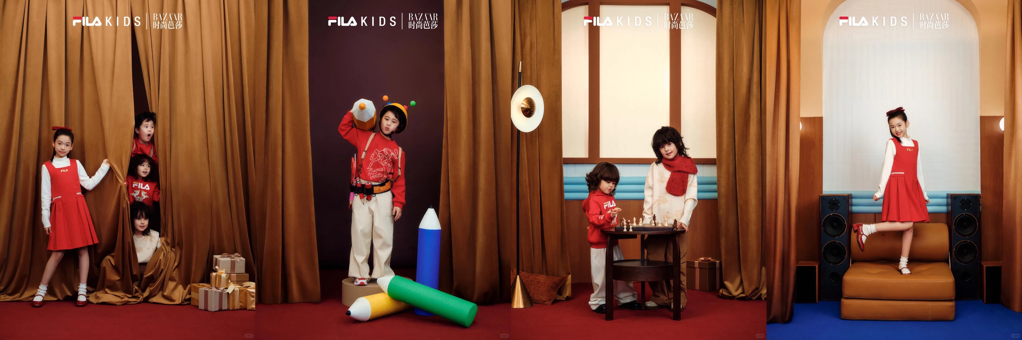 这出好戏的组局者,正是 FILA KIDS。携手《时尚芭莎》,FILA KIDS 不仅集齐了大家喜欢的互联网小孩,因综艺《爸爸当家》而爆火的西北 F3 与董璇女儿小酒窝有了首次梦幻同框,更乘上天马行空的童趣想象力,把萌娃们的幻想变成现实,在今年新春开启了一场奇幻的「抓马新年」之旅。