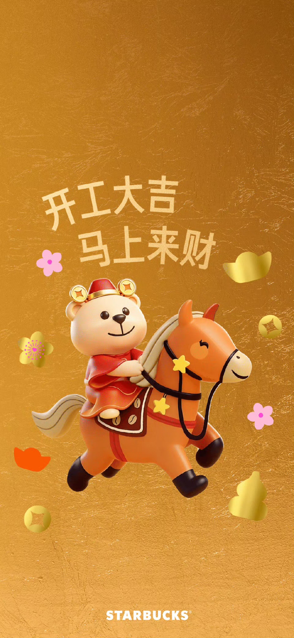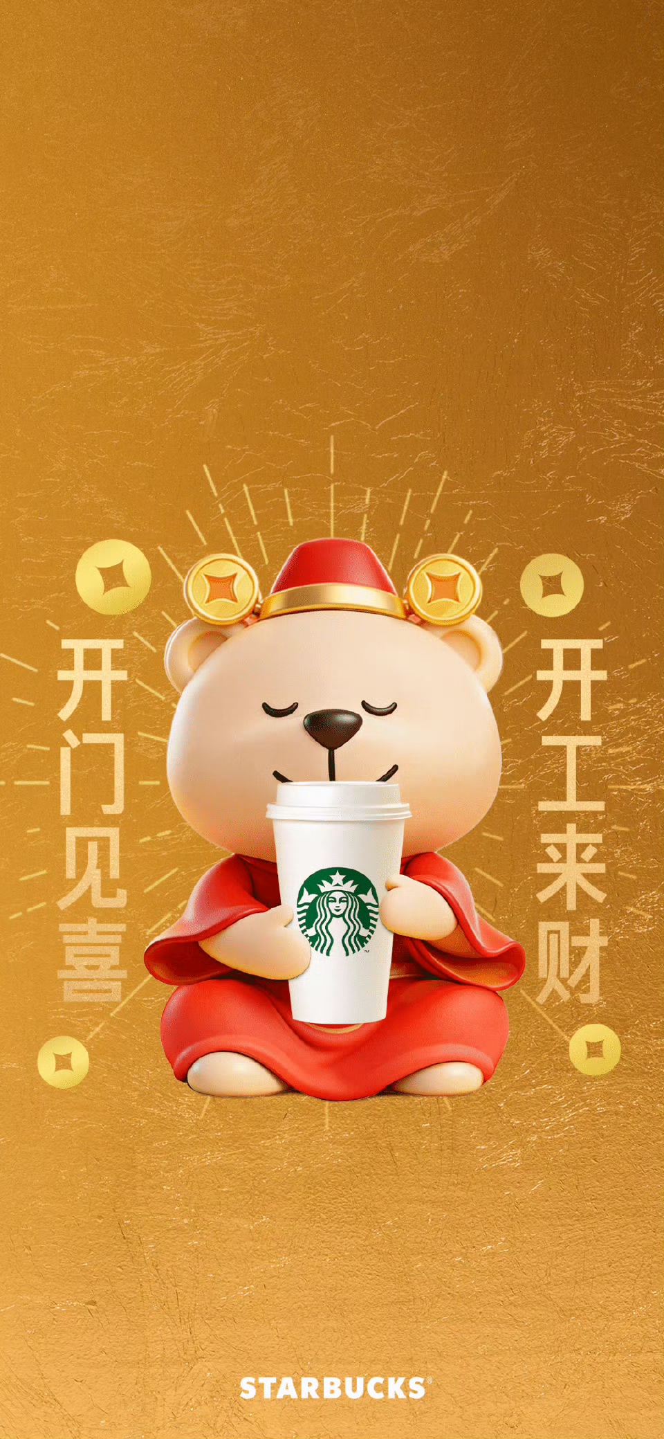 为进一步烘托氛围,星巴克还巧用品牌的熊熊 IP,推出熊熊开工表情包和熊熊开工壁纸邀请顾客领取,加强开工仪式的氛围感和趣味性。
