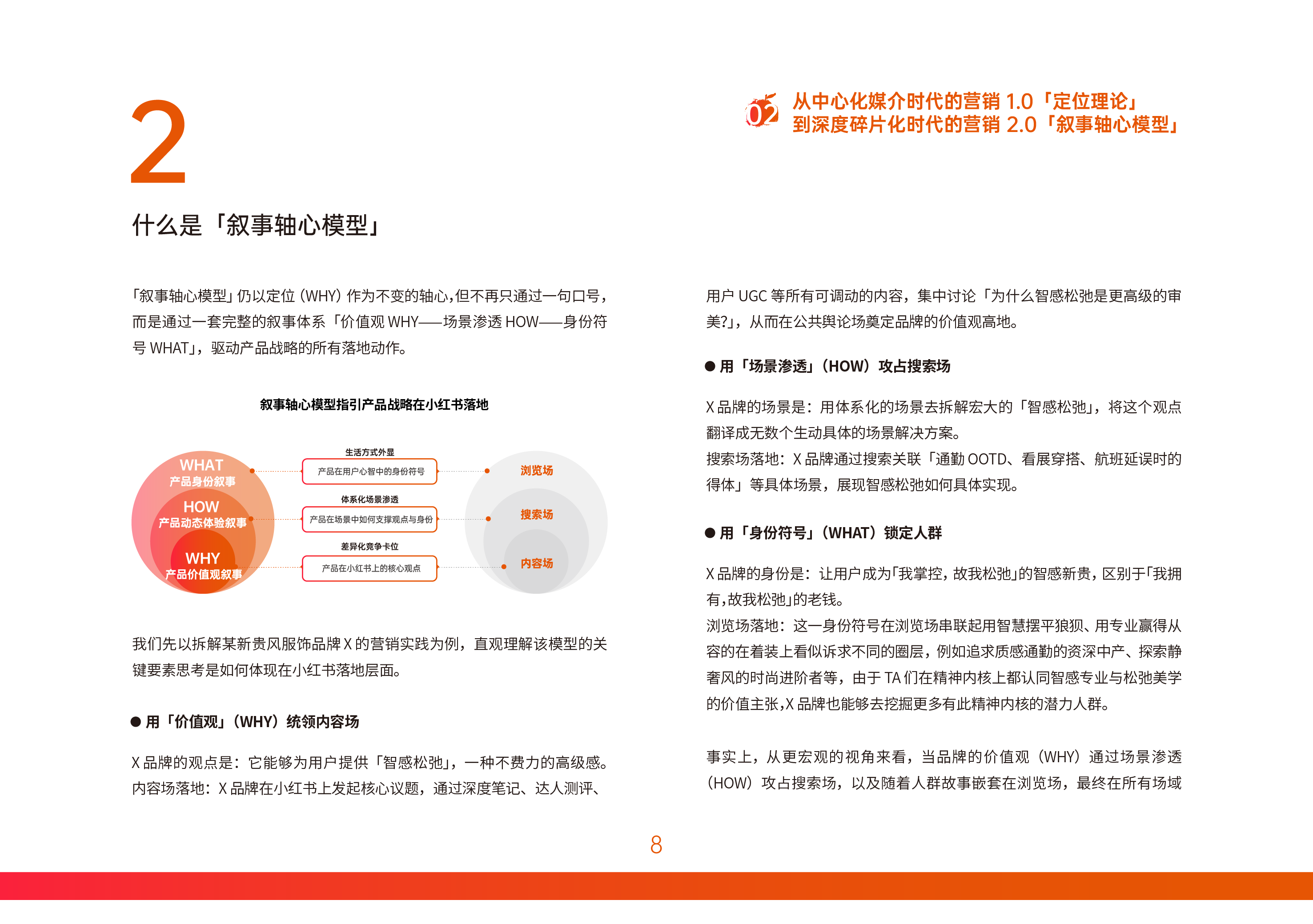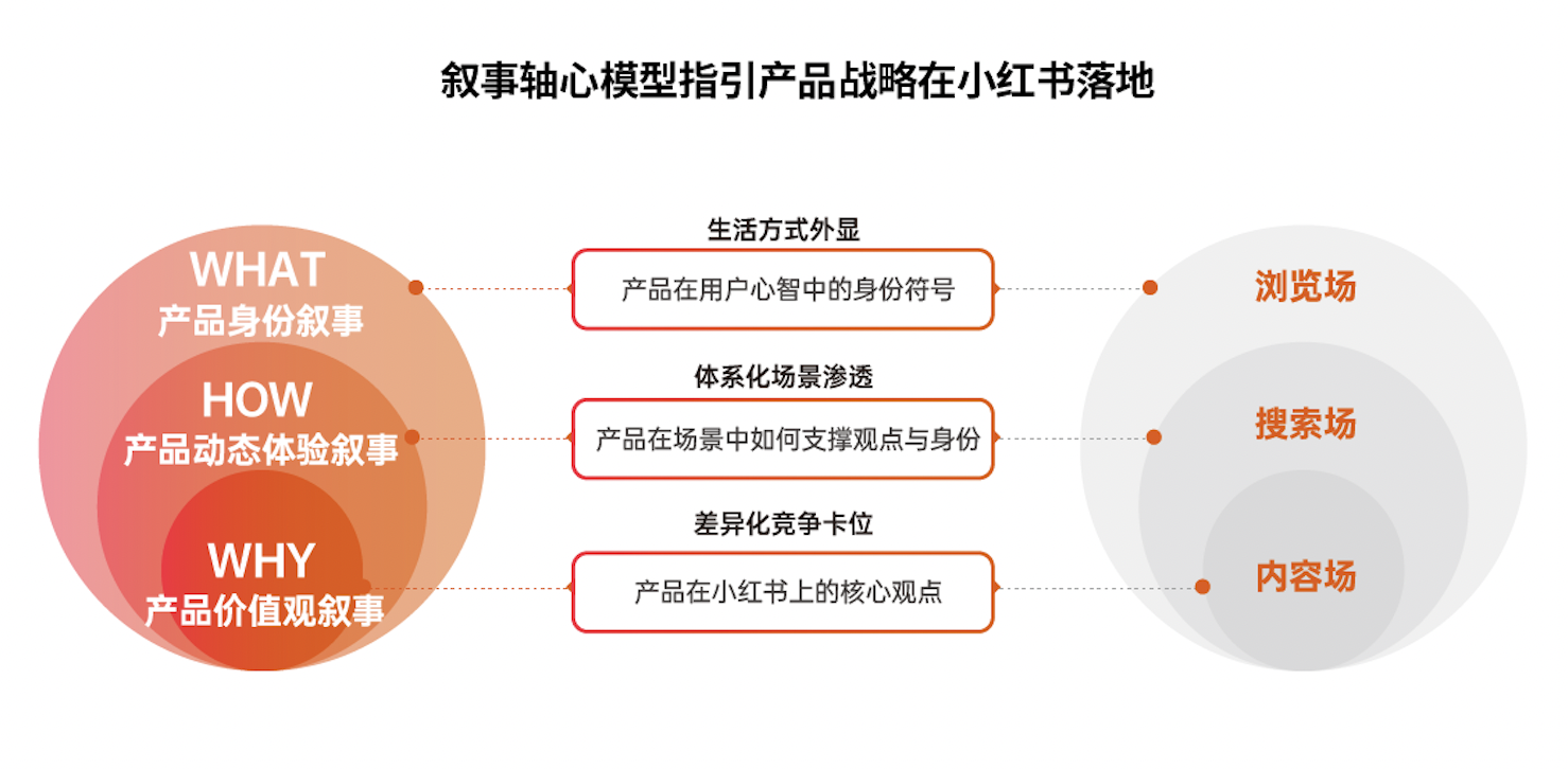 我们提出「叙事轴心」这一核心思考模型,即品牌需要通过构建一套完整的产品叙事体系「价值观(WHY)→场景渗透(HOW)→身份符号(WHAT)」,驱动产品战略在小红书平台的所有落地动作。