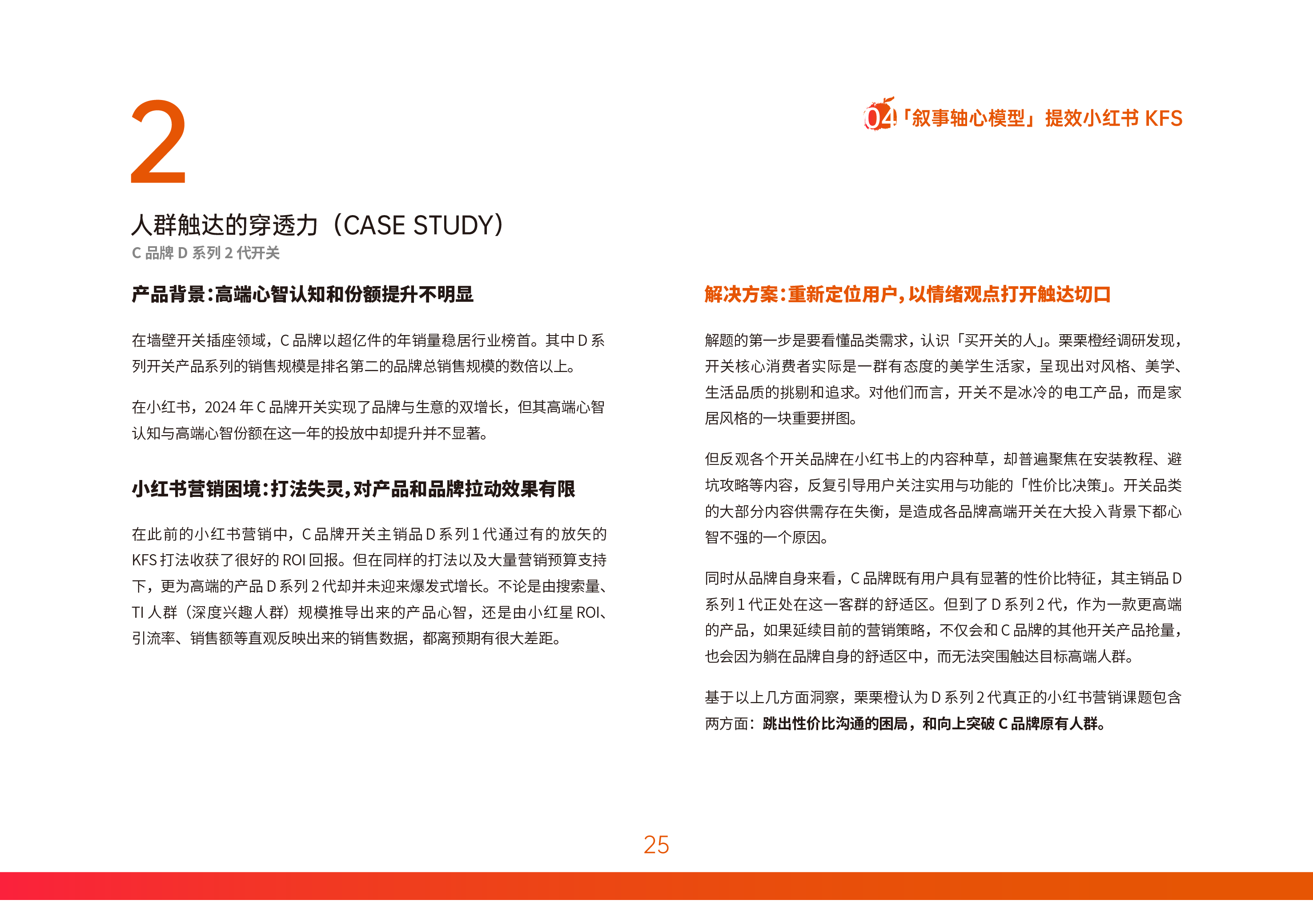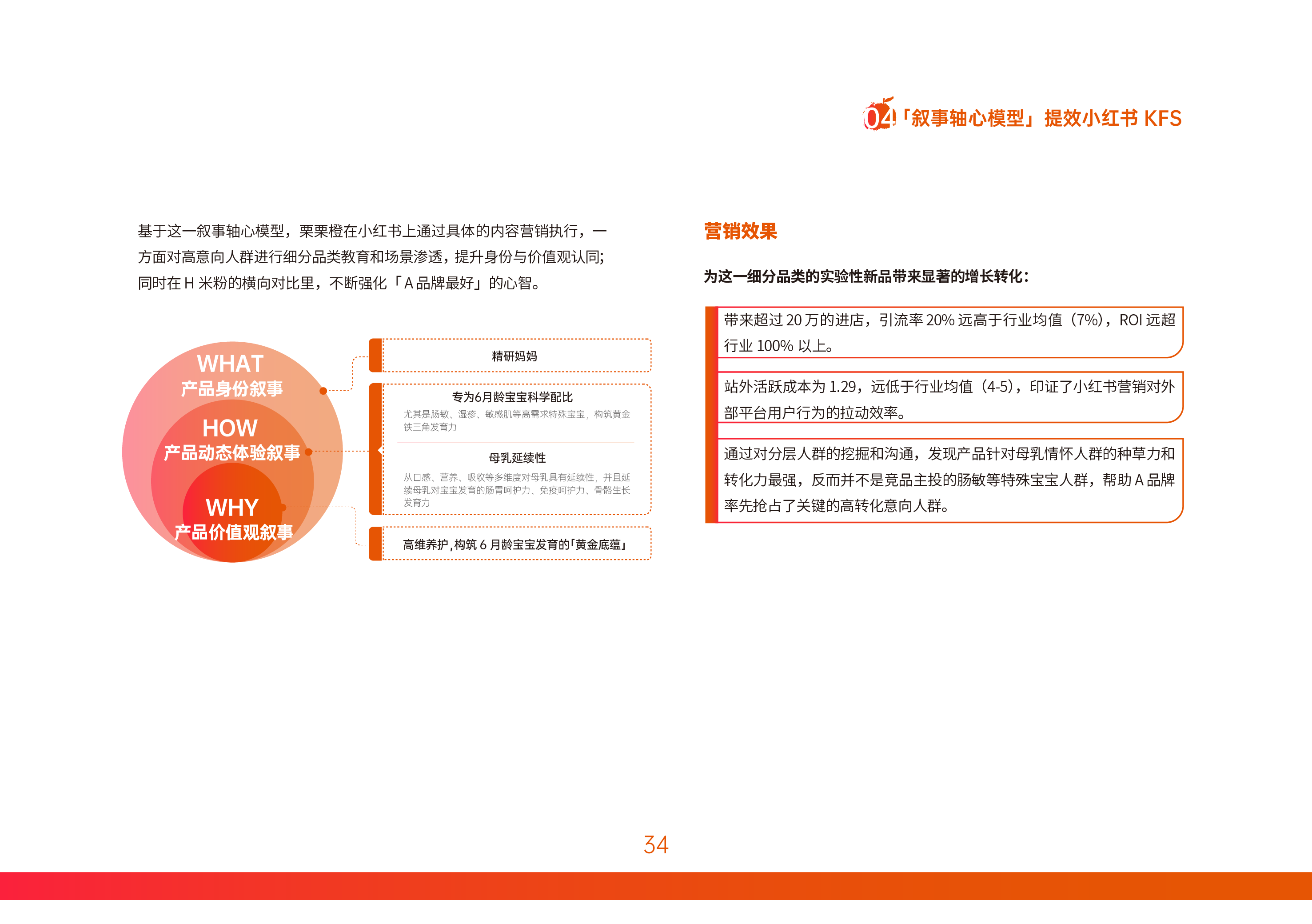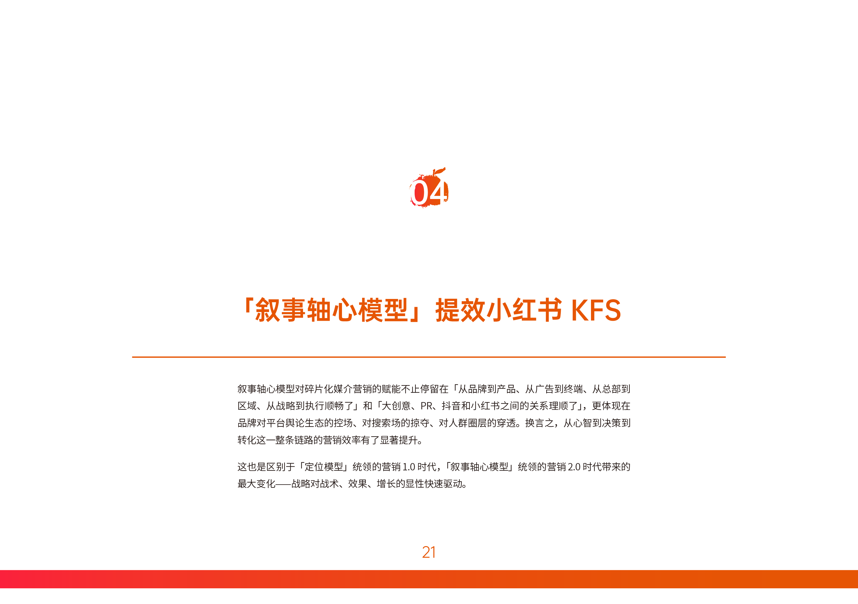 这也是一份源自一线作业现场的深度观察总结。分析真实案例的成功与不足,同时借由一系列 CASE STUDY,详细拆解「叙事轴心模型」指导下的解决方案是如何在实践中提效小红书 KFS,帮助品牌完成不同阶段的具体目标。