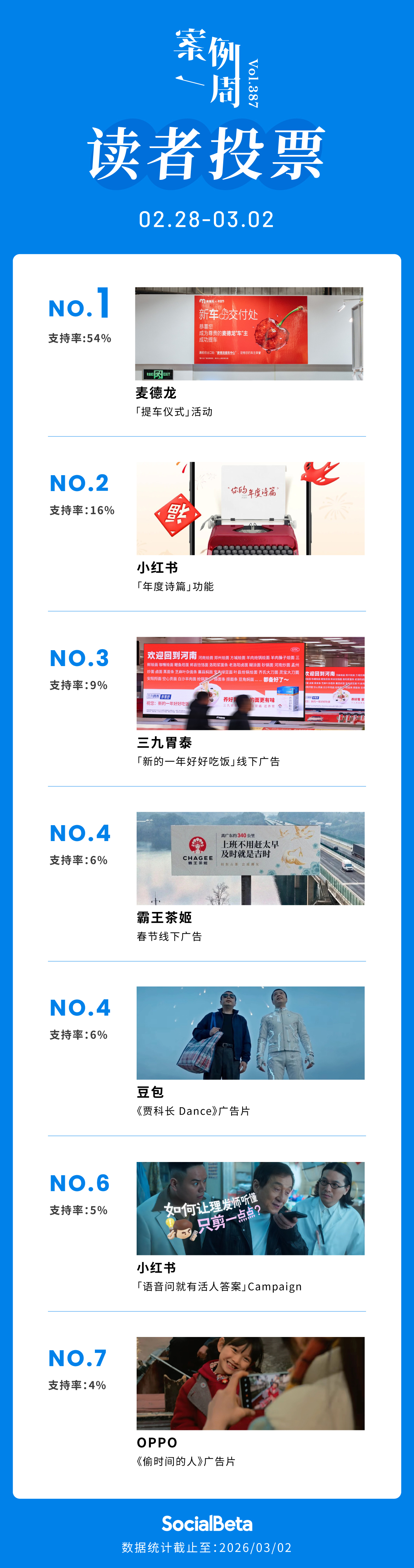 前言:「SocialBeta 案例一周上期回顾」是基于上周 SocialBeta「案例一周」微信投票得出的结果呈现。