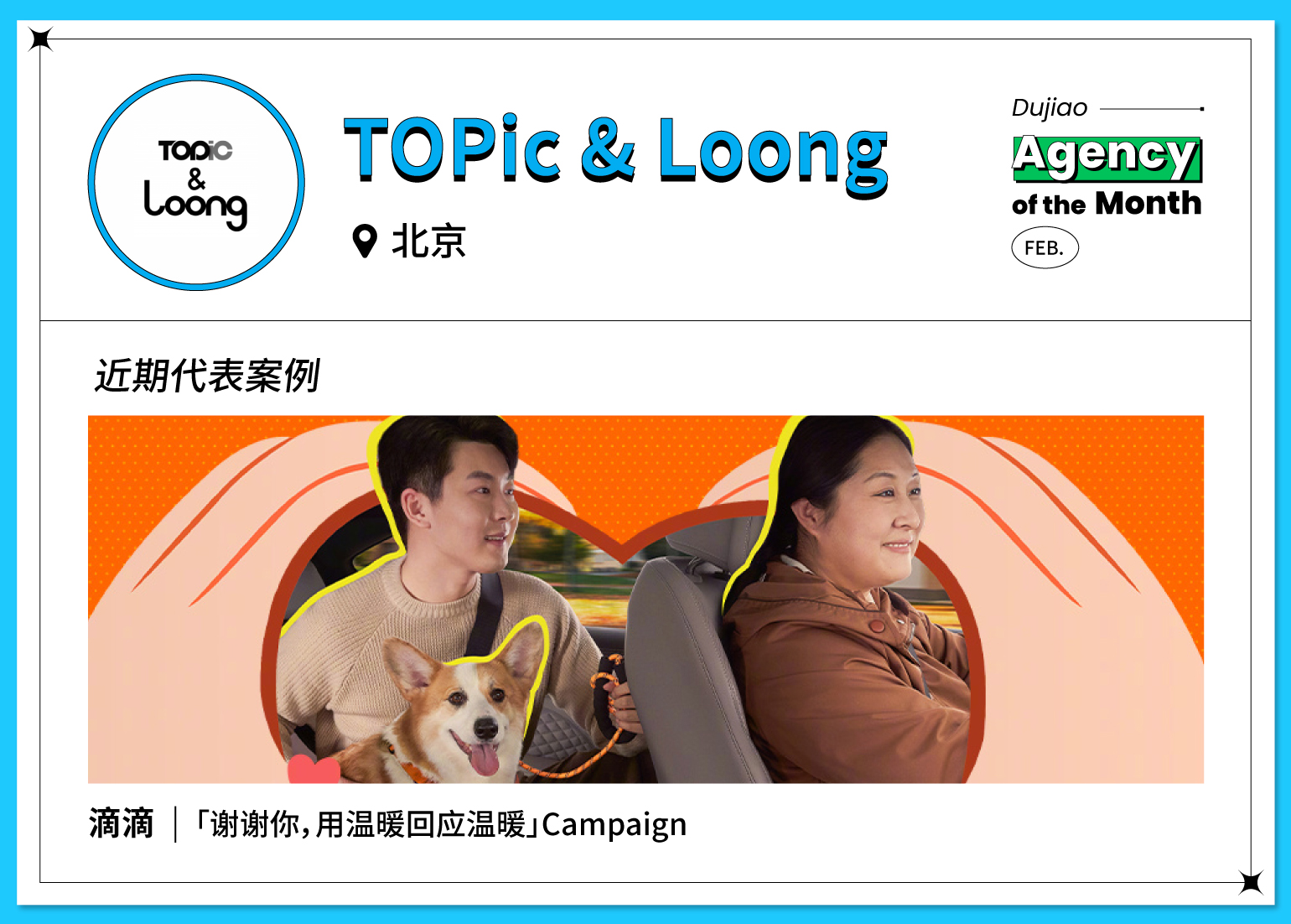 【Agency of the Month】栏目,包含 Agency CASE(案例) 和 NEWS(行业新闻) 两个维度。CASE(案例)部分结合本月 SocialBeta「案例一周」上榜案例以及代理商观察,挖掘每个月最值得关注的宝藏公司;NEWS(行业新闻)涵盖当月重要行业信息和公司动态,致力以更多元的纬度展现公司信息。不管是出作品、还是求发展,这些公司别错过!