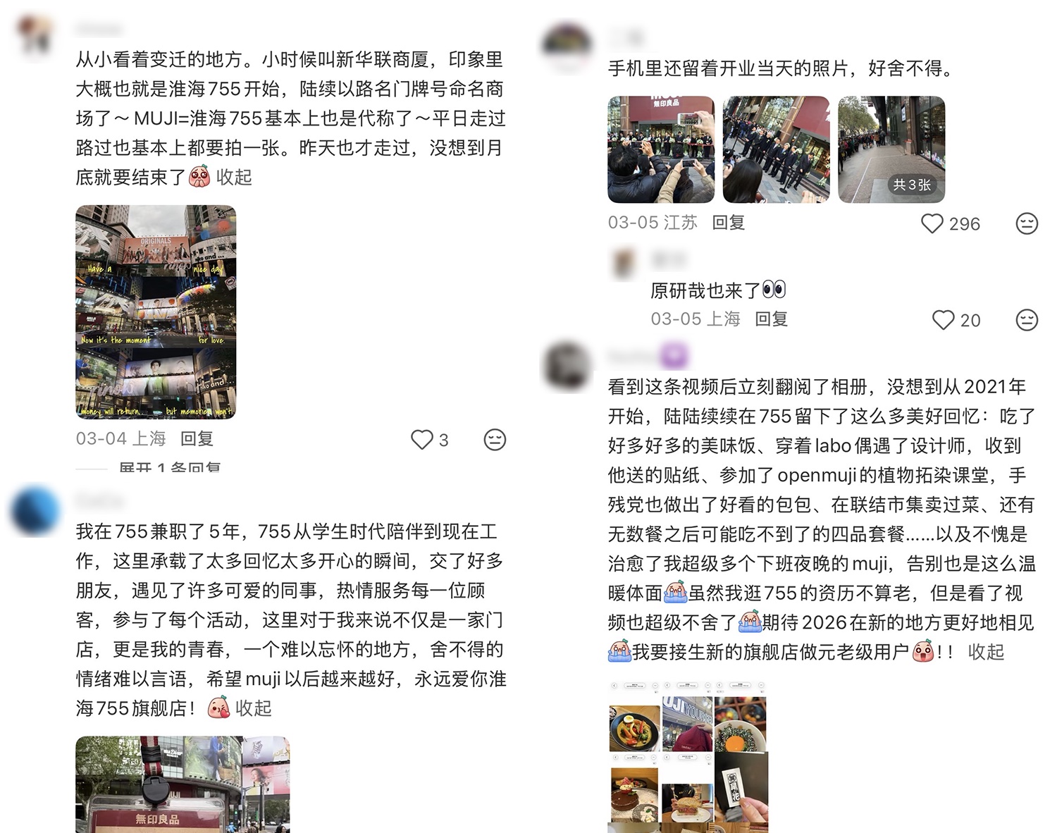 不少用户在分享海报的同时,也回想起这家 MUJI 门店在自己人生轨迹中留下的印迹,从学生时代的购买文具,到工作后把 MUJI 餐厅当食堂,甚至还有人翻出了十年前开业时拍下的照片。