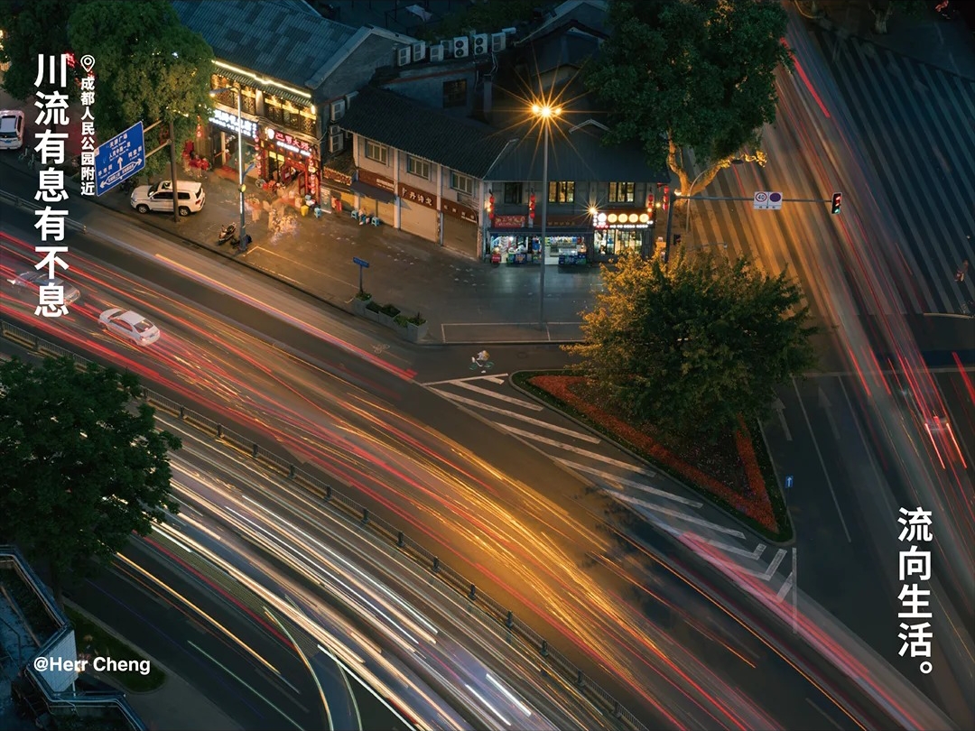 「川流」的「川」既指四川,也指向贯穿成都的锦江等河流。从「不息」到「有息」,一字之差既点明闭店升级、蓄力焕新的状态,又巧妙传达出成都人「忙里偷闲、张弛有度」的生活态度。